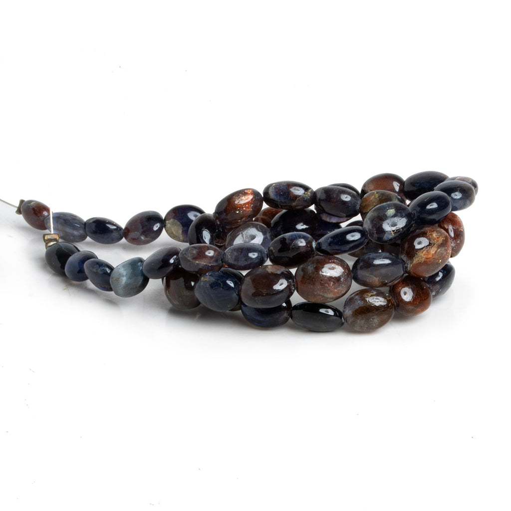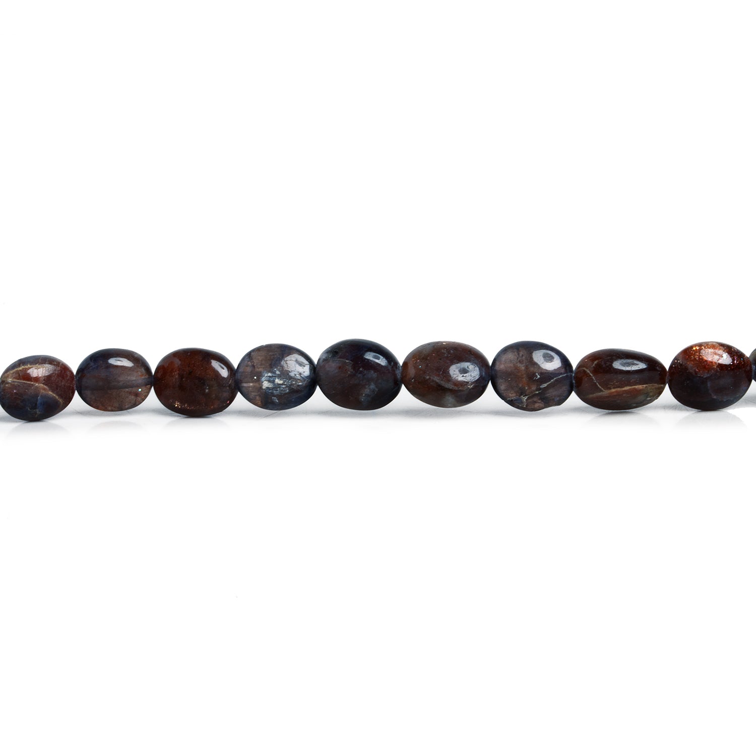 Crafted with precision, these oval beads boast a smooth, polished surface that reflects light in a mesmerizing dance of colors. The deep, intense shades of this gemstone create a unique and alluring aesthetic, adding further Sunstone affect to Iolite bodies already full of color play.
