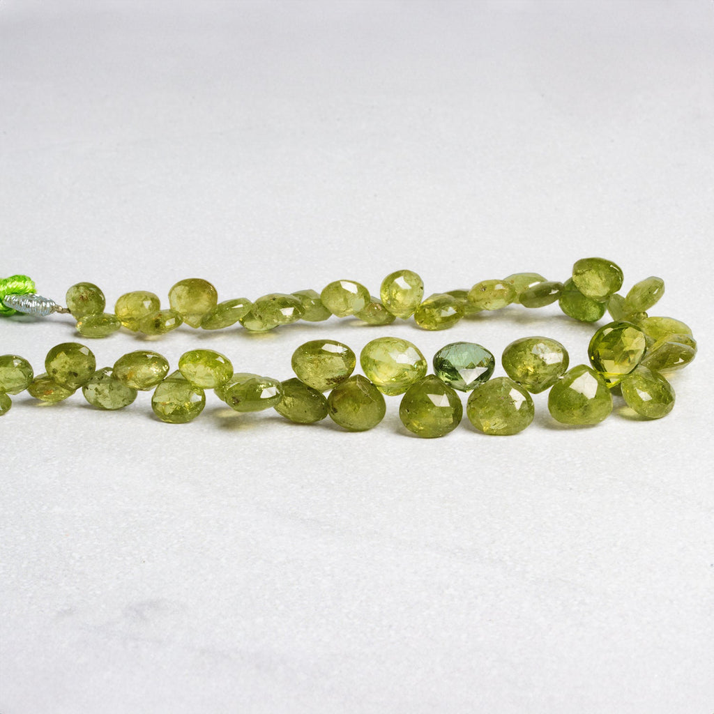 Beads range from about 6x5mm to 8x7mm. These gorgeous Green Idocrase beads boast a vibrant color that dazzles across wide-bodied heart shapes. Fans of Idocrase's unique color palette should jump on these exquisite offerings, ideal for use in elegant necklaces, earrings and a range of other Jewelry Designs!