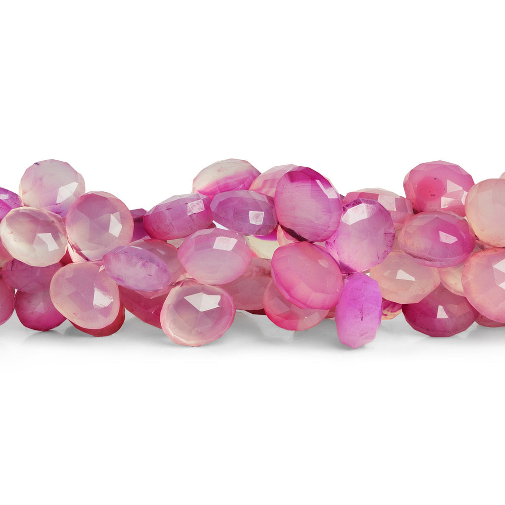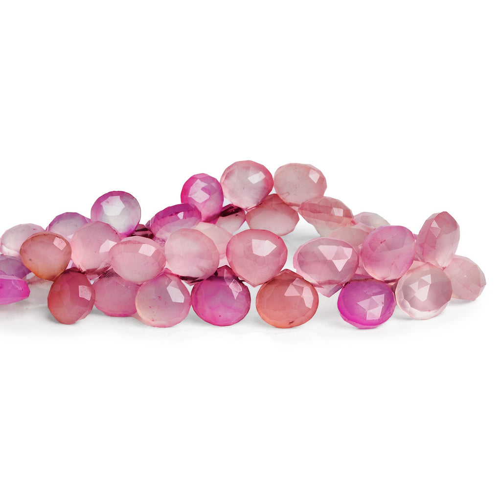 These incredible pieces show off a shaded pink color palette with hints of magenta on thick hear shapes with the milky clarity that fans of Chalcedony know and love. Expect a generally light appearance on beads that vary somewhat on the strand in size. These vivid Pink beauties are color enhanced.