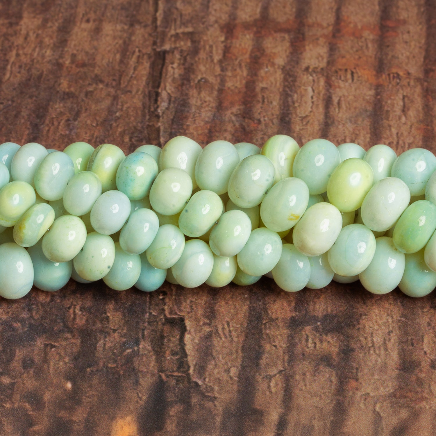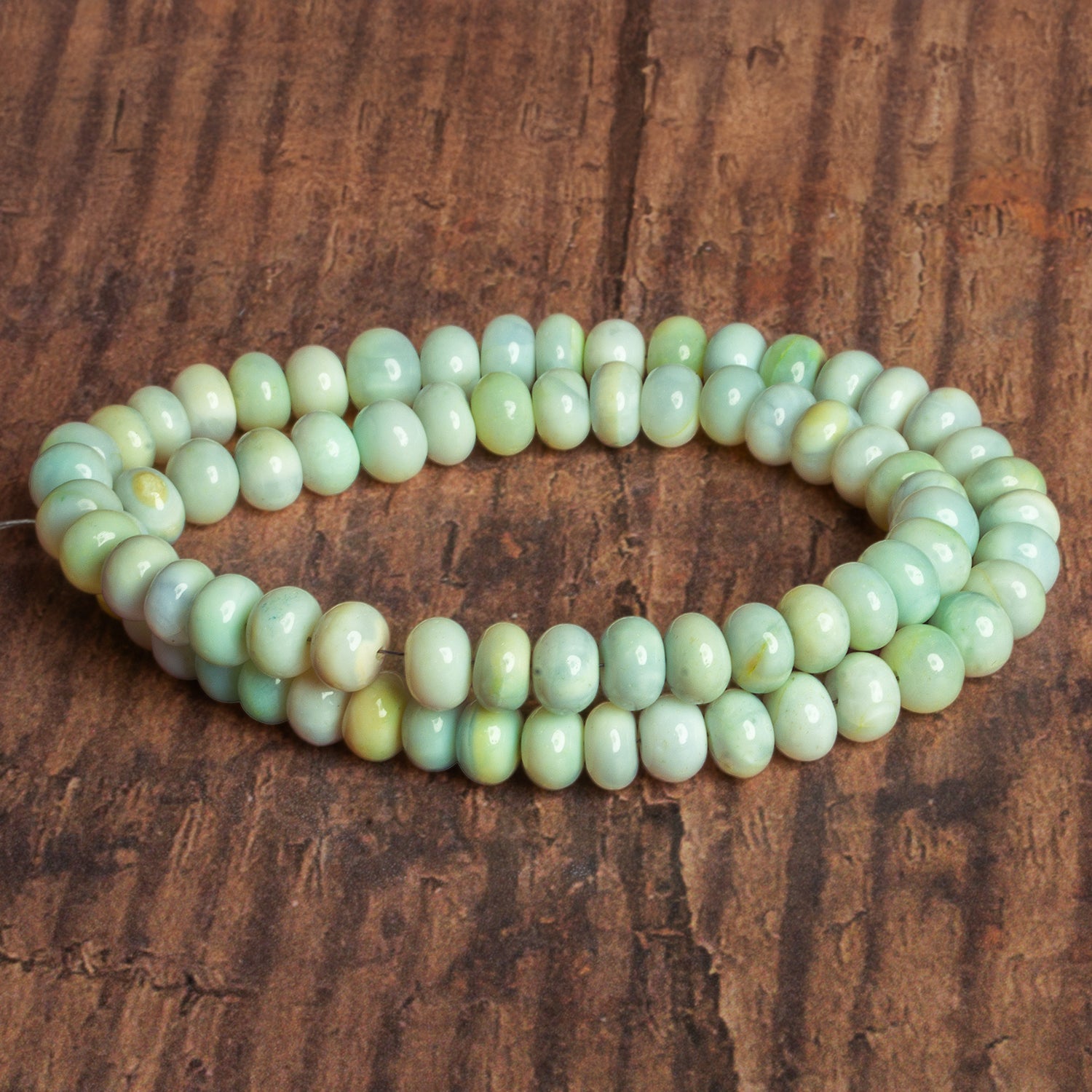 These Yellow Green Opal Plain Rondelle Beads offer a refreshing and contemporary twist on classic opal. Their smooth, glossy finish and juicy hues of pale jade and soft seafoam green give each strand a lively, springtime appeal. Measuring approximately 8mm to 9mm, these plump rondelles are ideal for adding a splash of vibrant pastel to your designs without overpowering them.