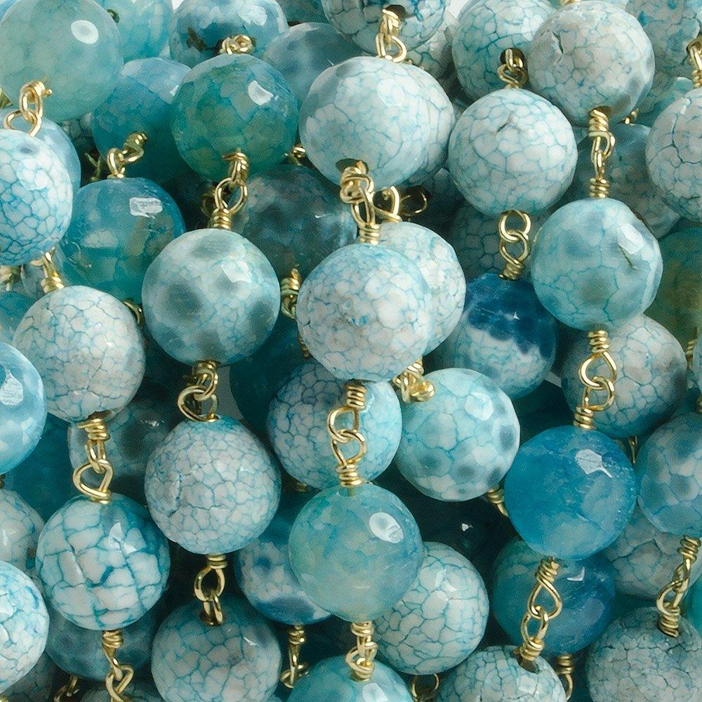 8mm in size Crackled Aqua Blue Agate round Gold Chain by the foot with 21 pieces: Approximates. Select a quantity to equal the number of feet desired. (ie 4 quantity = 4 feet) Footage will be continuous.