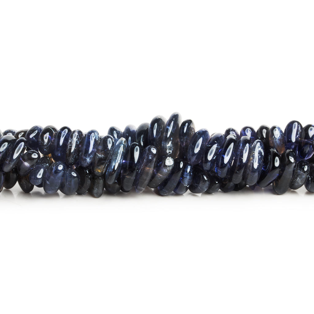 These Iolite Plain Nuggets are beautifully crafted, showcasing the stone's unique pleochroism. Each bead is center-drilled, allowing for a versatile and fluid design in your jewelry pieces. The beads range in size from approximately 6x5mm to 11x7mm, with a smooth, rounded shape that highlights the natural beauty of the Iolite stone.