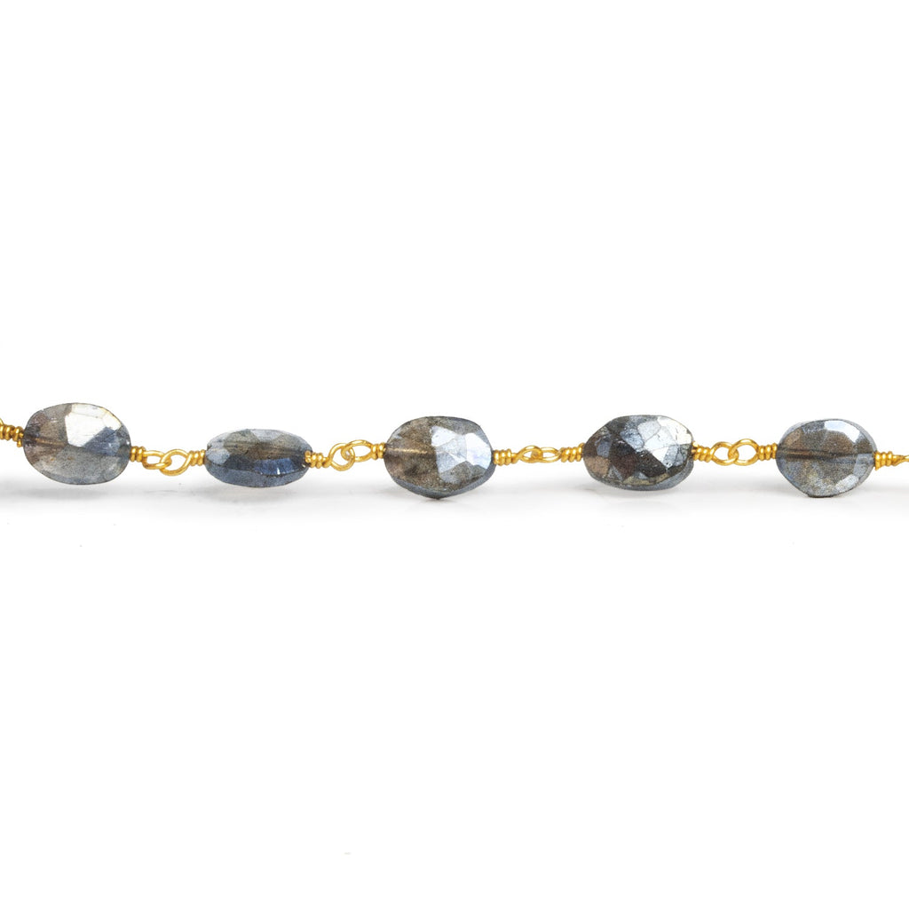 8x6mm Mystic Dark Moonstone Faceted Oval Gold Chain 22 beads