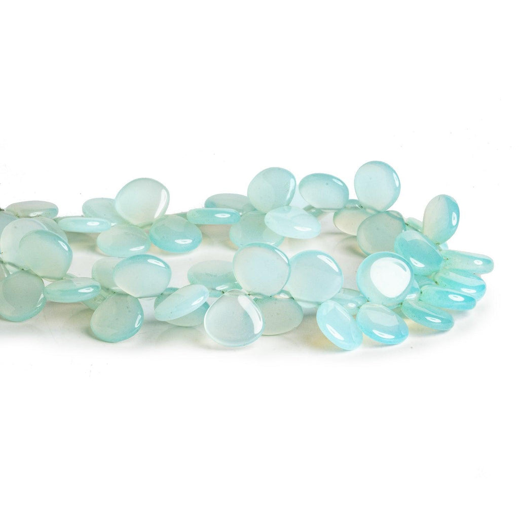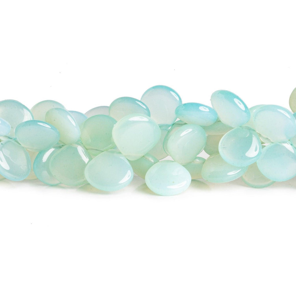 Beads measure about 9mm to 10mm in diameter. These beads sport milky, thin blue bodies whose attributes combine for an alluring appearance.