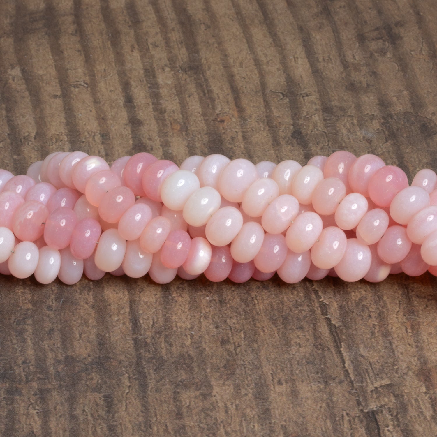 Beads measure about 9mm in diameter with a 0.5mm drill hole. These curated opal strands feature an alluring shaded Pink across milky to translucent bead bodies. Expect a consistent Springy-Pink hue exudes quality and elegance. Fans of Pink opal will adore the limitless possibilities afforded for statement pieces in everything from necklaces to earrings and bracelets.