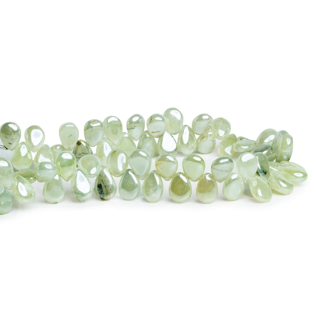 These Mystic Prehnite Plain Pears are an enchanting addition to any jewelry collection. Measuring approximately 9x6mm, these beads strike the perfect balance between delicate and substantial, making them versatile for a wide range of designs. Each strand contains around 53 beads, offering ample material for multiple projects.