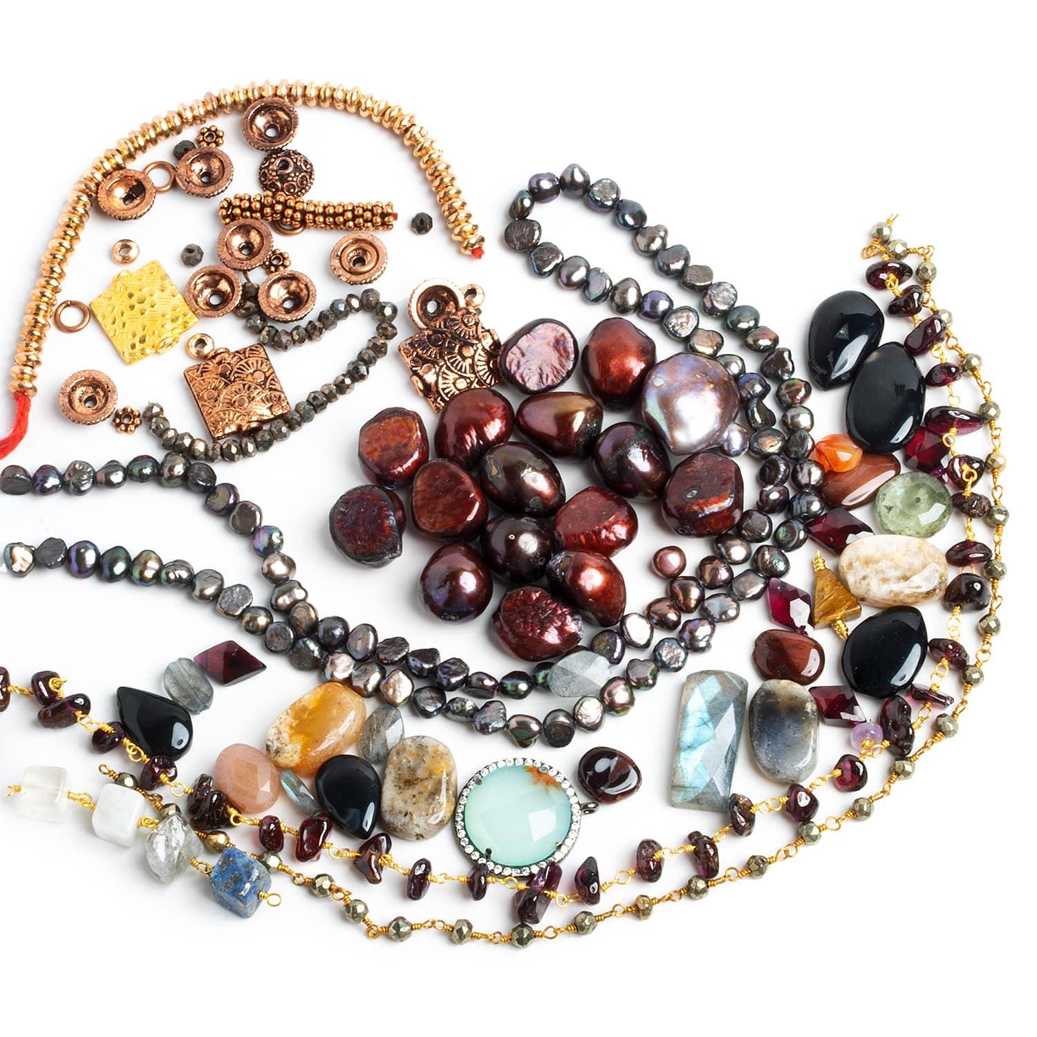 Includes the full assortment of pearls, metals gemstone beads and handwrapped chain seen here.