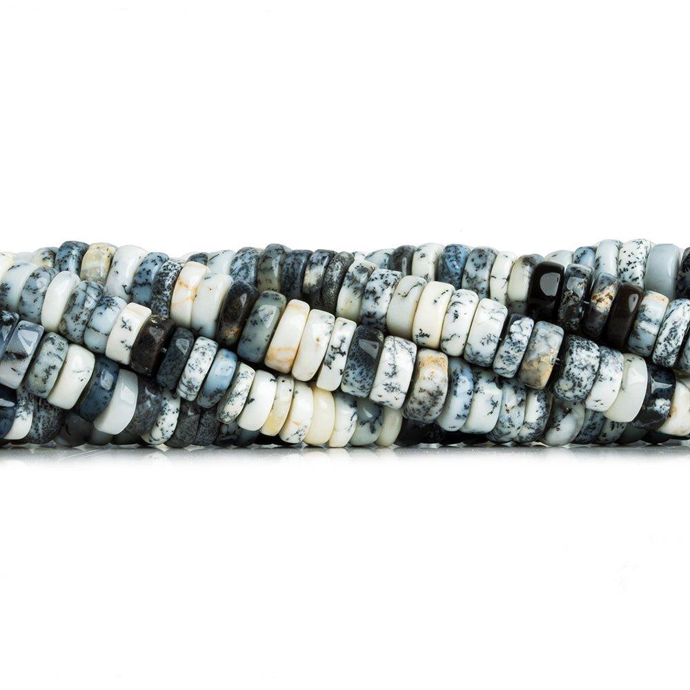Beads average 7mm in diameter. These beautiful heishi beads display the marvelous textures and patterns of high-quality Dendritic Opal. Thin and well-crafted, our heishis are perfect for a wide range of jewelry design applications.