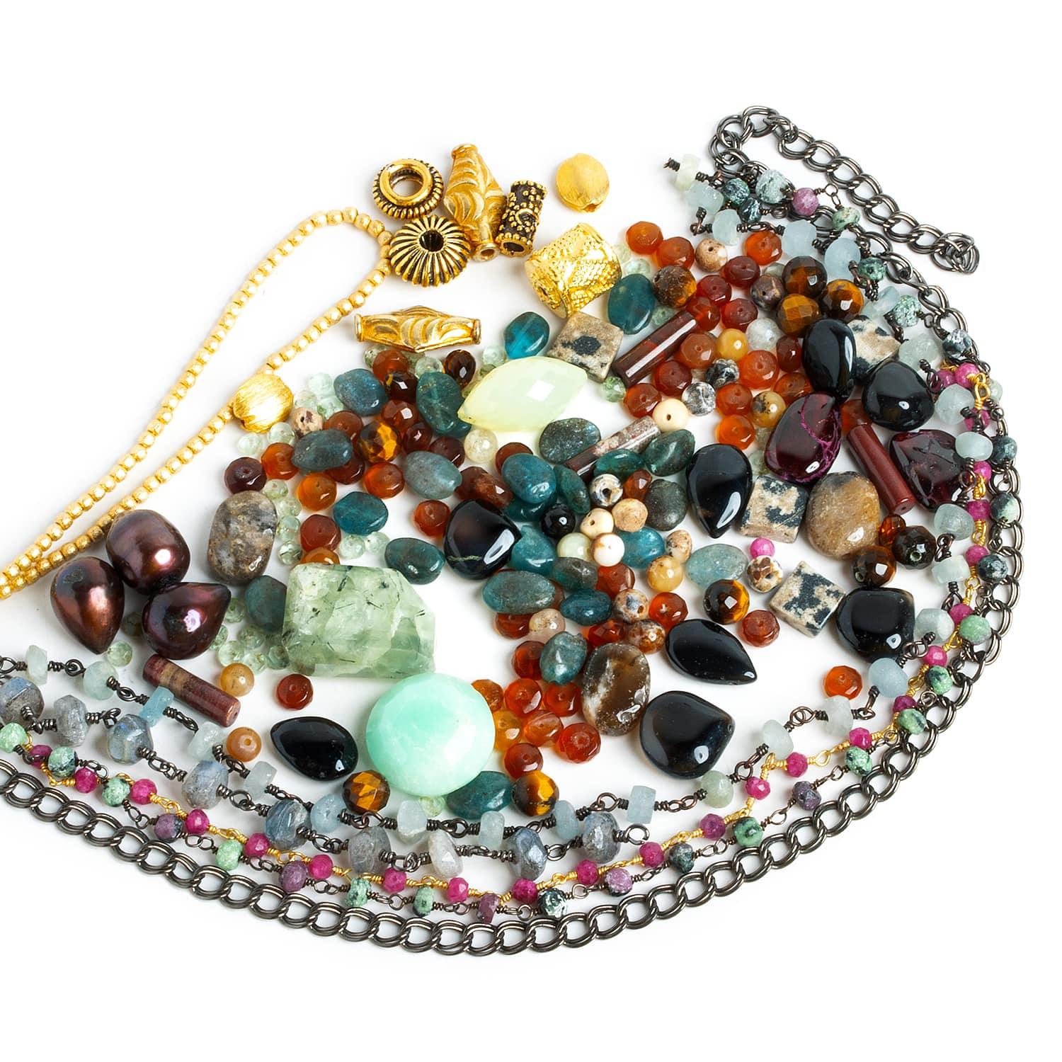 Includes the full assortment of pearls, metals gemstone beads and handwrapped chain seen here.