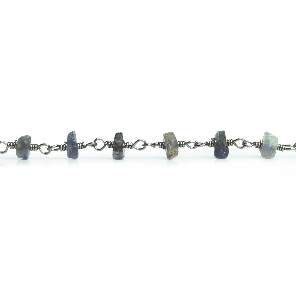 4-5mm Iolite Tumbled Rondelle Black Gold Chain 38 pieces