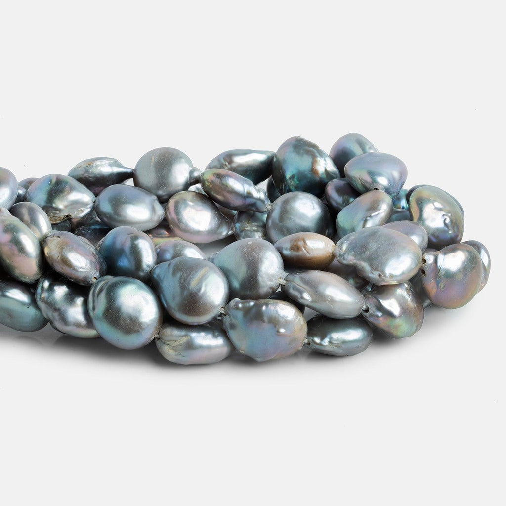 These Silver Coin Freshwater Pearls captivate with their luminous, mirror-like glow and broad, flattened shapes that bring a modern elegance to the organic beauty of pearls. Each bead showcases a stunning silvery overtone with subtle iridescence, reflecting soft hints of violet, green, and blue across their naturally rippled nacre. Ranging in size from approximately 16x13mm to 20x15mm, these pearls make a bold and versatile choice for statement jewelry designs. Their irregular yet graceful coin shape enhances their unique character, ensuring each strand feels both refined and one-of-a-kind.