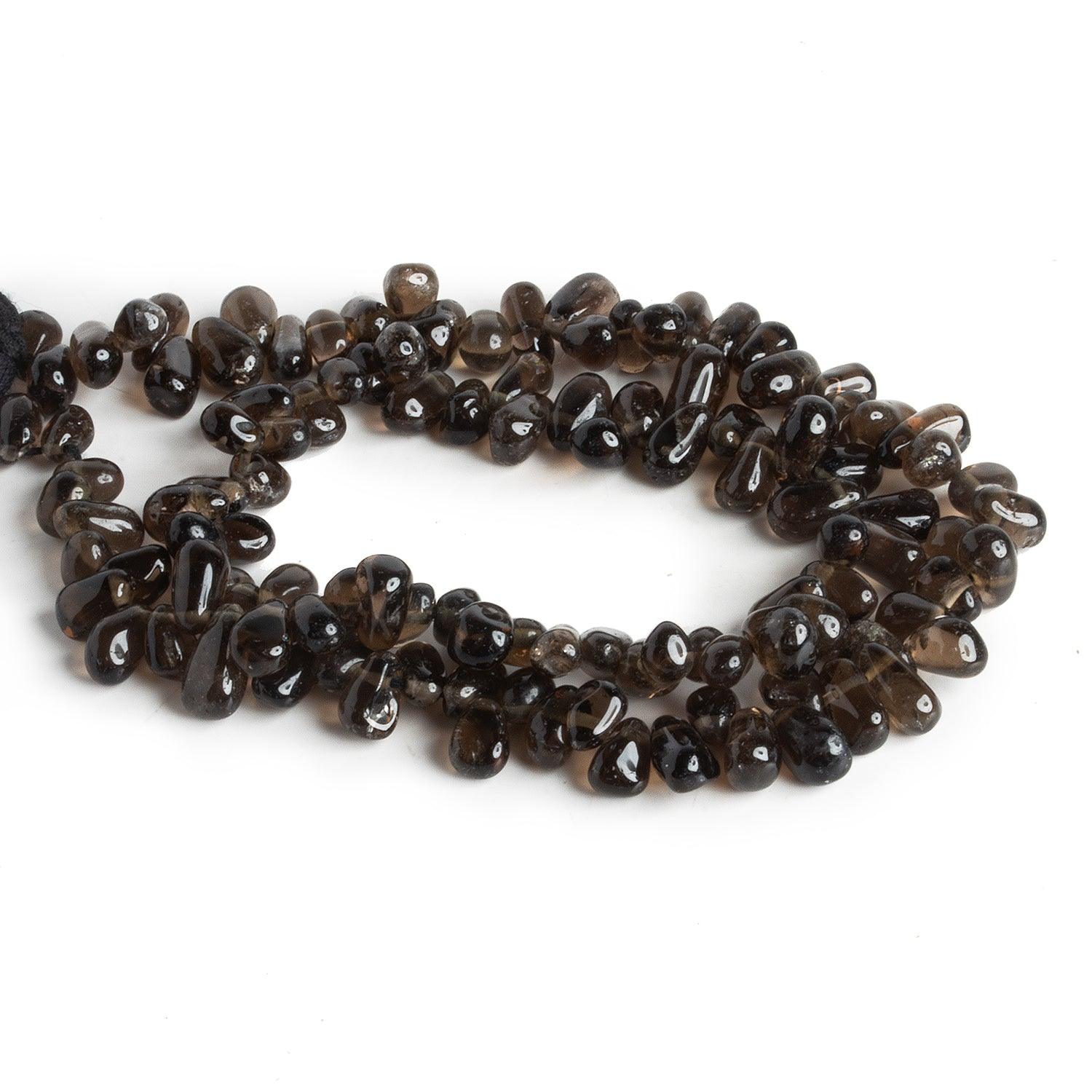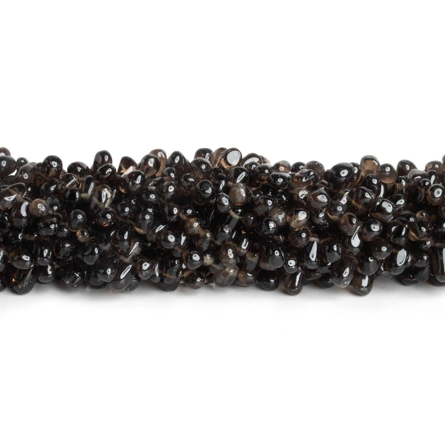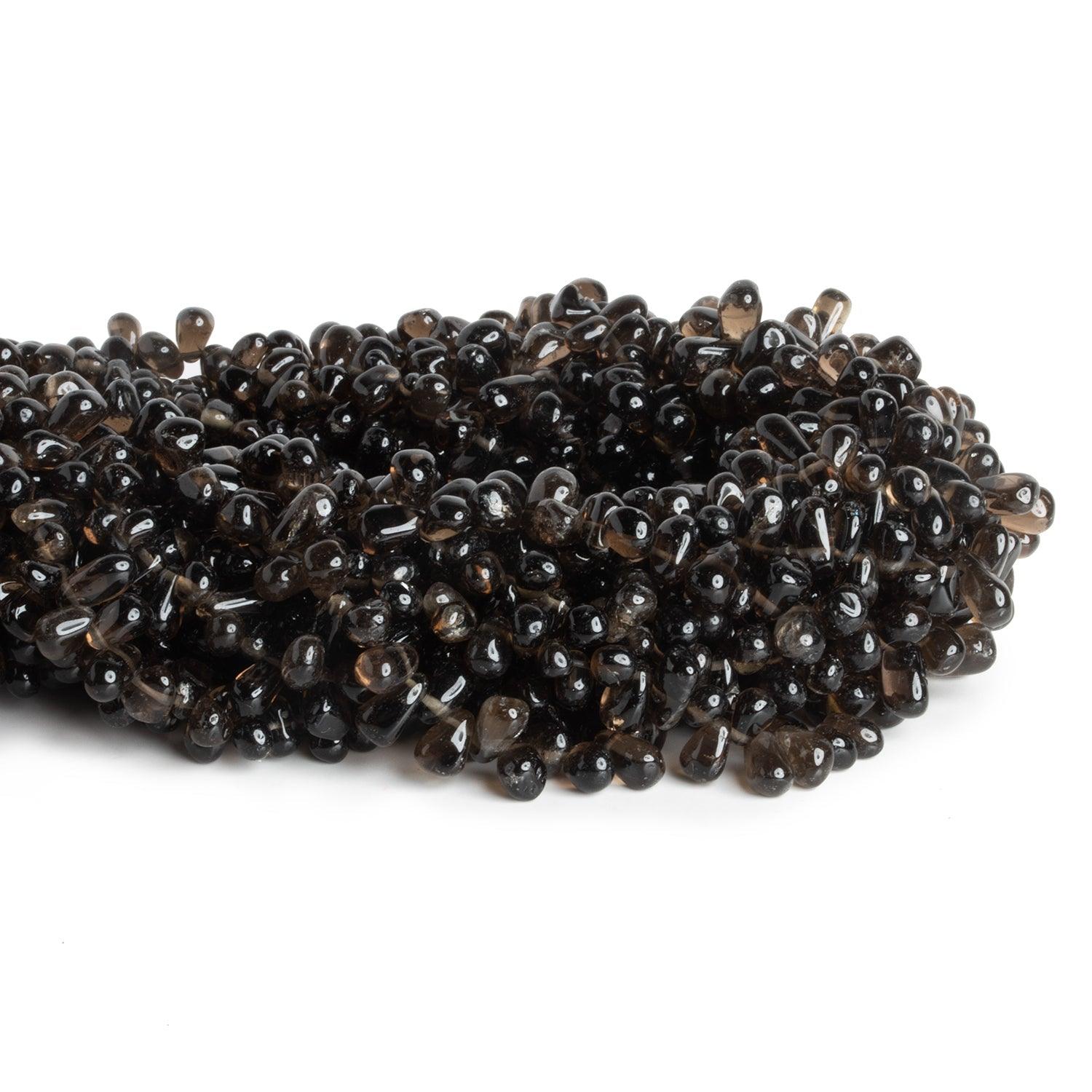 Beads range from about 5x4mm to 9x6mm. These irregular teadrop shapes show off a dark Smoky Quartz color palette. Fans of an organic, naturalistic look should jump on these alluring pieces as an excellent value on a popular bead shape.