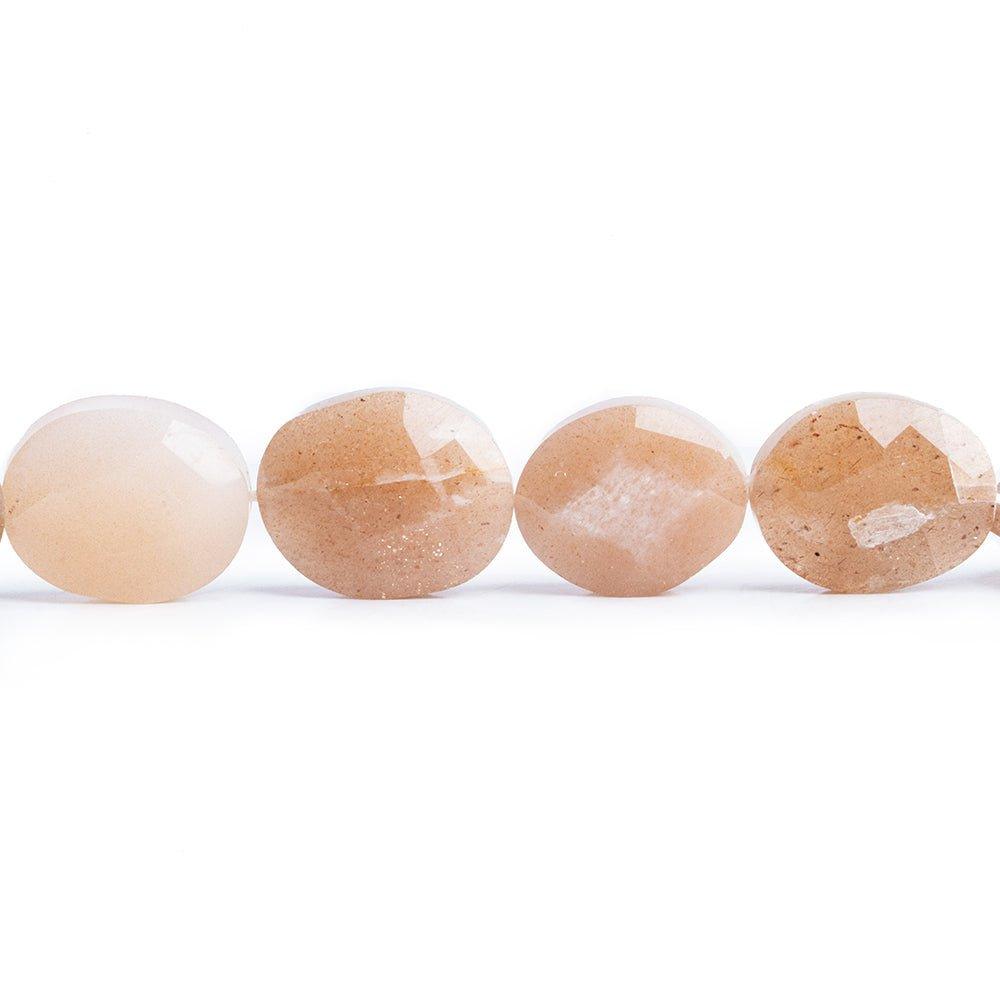 Sunstone faceted ovals measure approximately 10x12mm, exhibit vitreous luster, a slight metallic shiller within a light slightly pinkish tan body, good symmetrical shape and good make.
