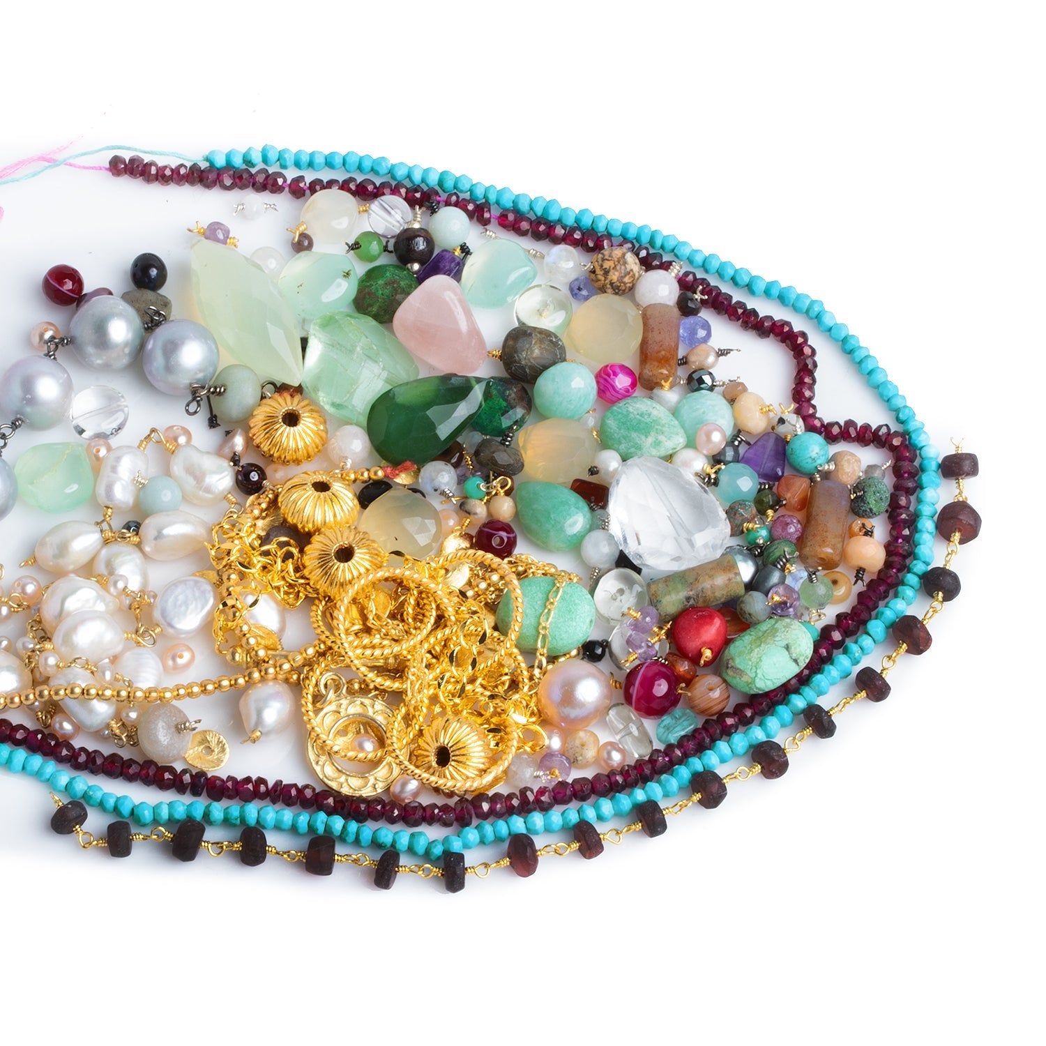 Includes the full assortment of pearls, metals gemstone beads and handwrapped chain seen here.