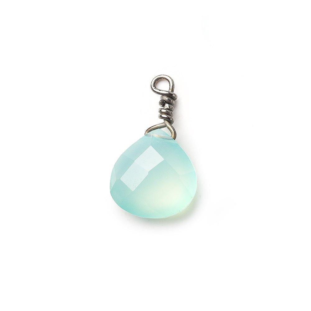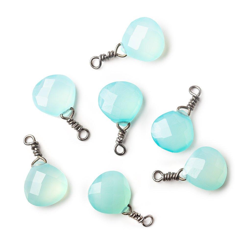 10mm Black Gold Wire Wrapped Sea Blue Chalcedony faceted heart Pendant focal bead 1 piece. Color treated.