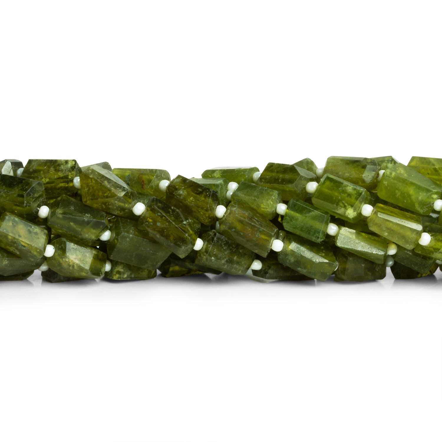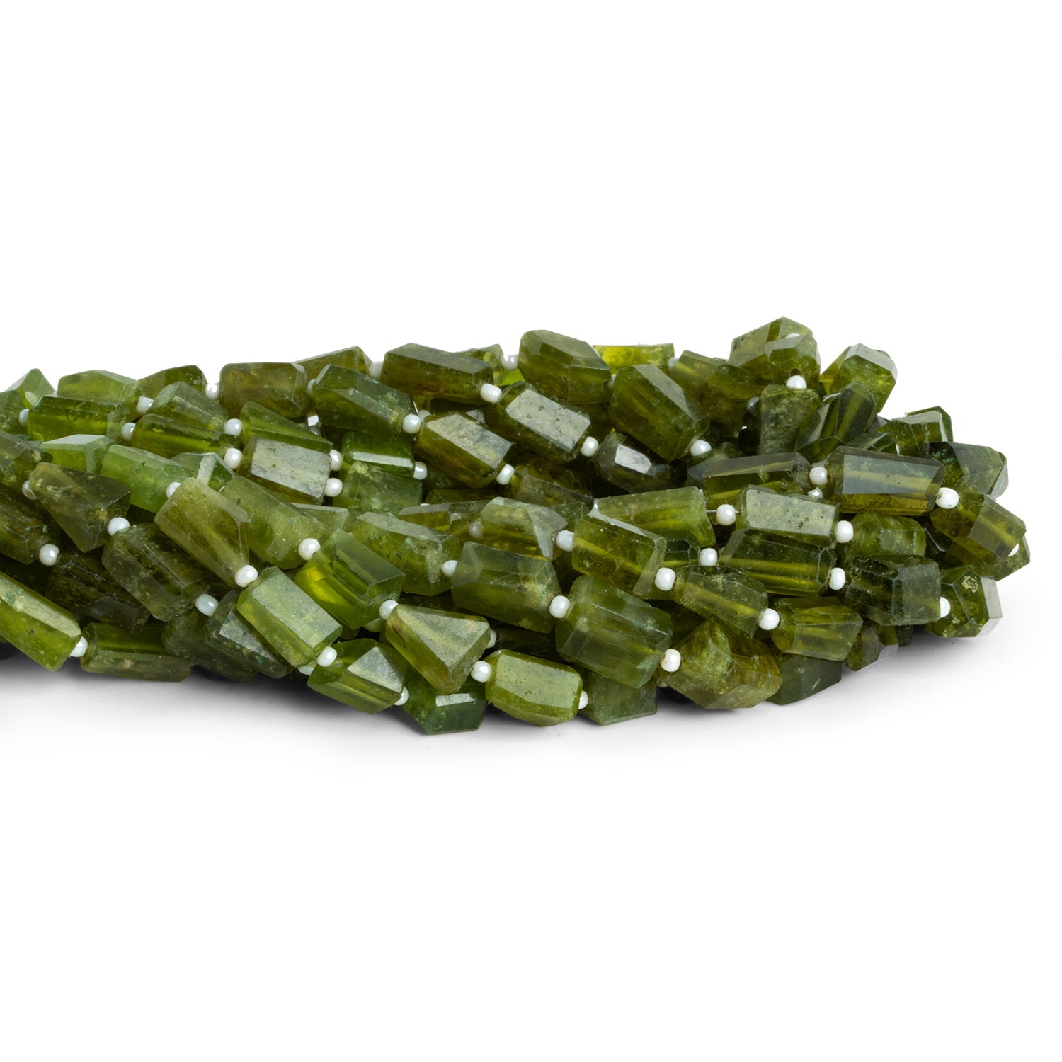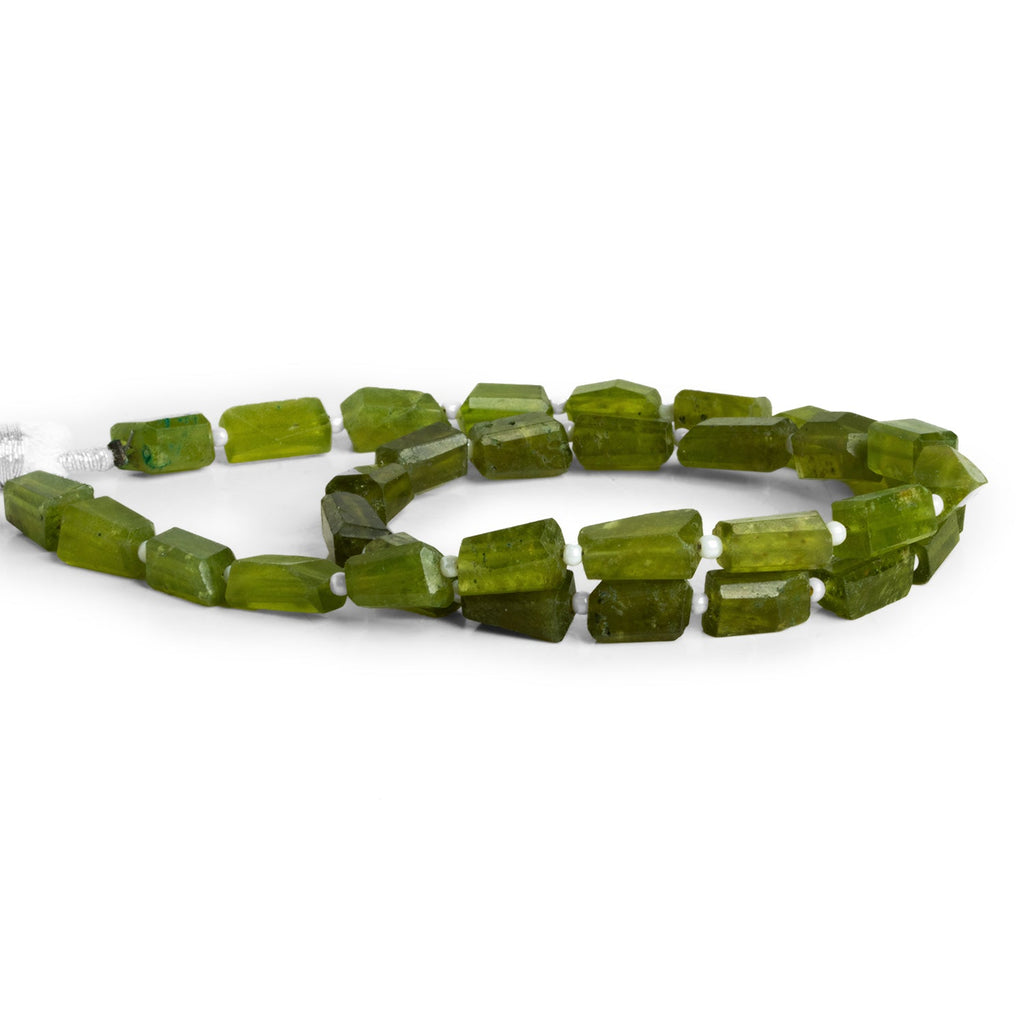 Beads measure about 8x5mm to 12x7mm. These unique Idocrase pieces feature richly colored yellowish-green nuggets in a vaguely rectangular, faceted shape. Fans of this distinctive and striking tone should jump on these exquisitely crafted beads perfect for catching the eye in virtually any jewelry design. Imbue your next piece with Idocrase's natural allure, be it a necklace, bracelet or earrings.
