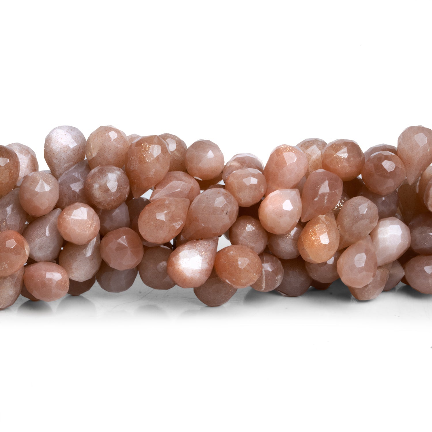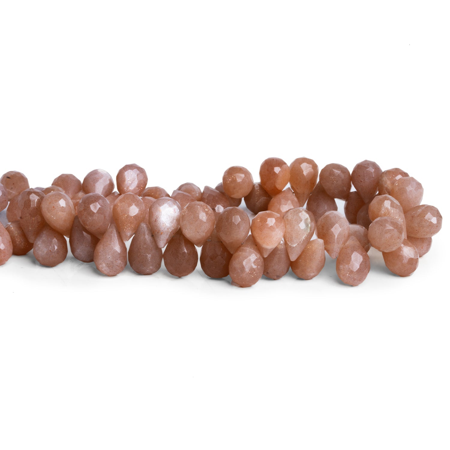 10x7mm Peach Moonstone Faceted Teardrops 8 inch 54 beads