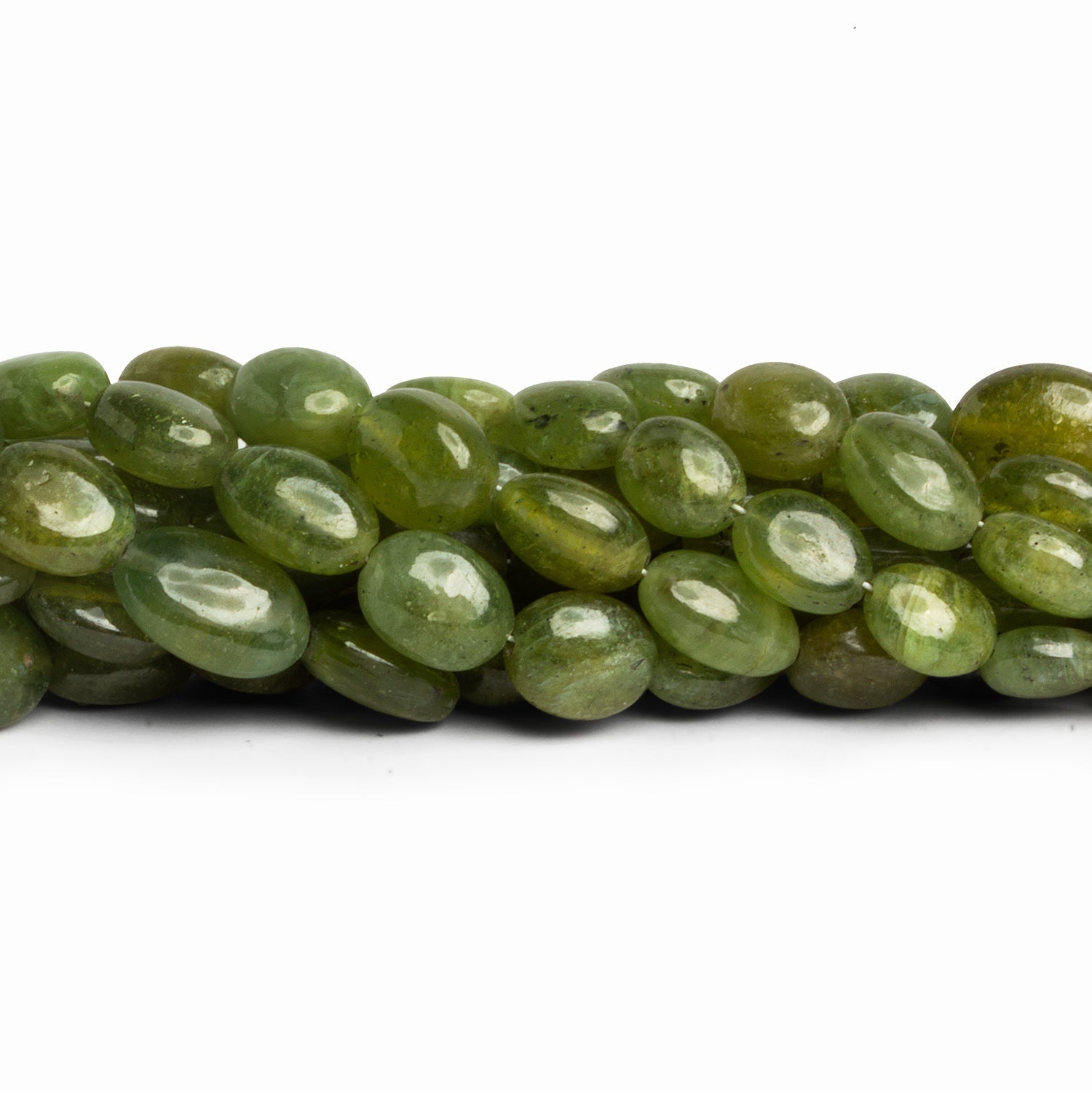 These Green Sapphire plain oval beads feature rich, natural olive-to-forest green tones with soft translucency and subtle internal texture that gives each bead depth and organic character. The strand shows a beautiful range of sizes from petite accents to larger statement ovals, creating an easy built-in focal flow that’s perfect for graduated designs. Polished to a smooth finish, these sapphires offer a refined glow rather than high sparkle, letting the natural color and stone texture take center stage.