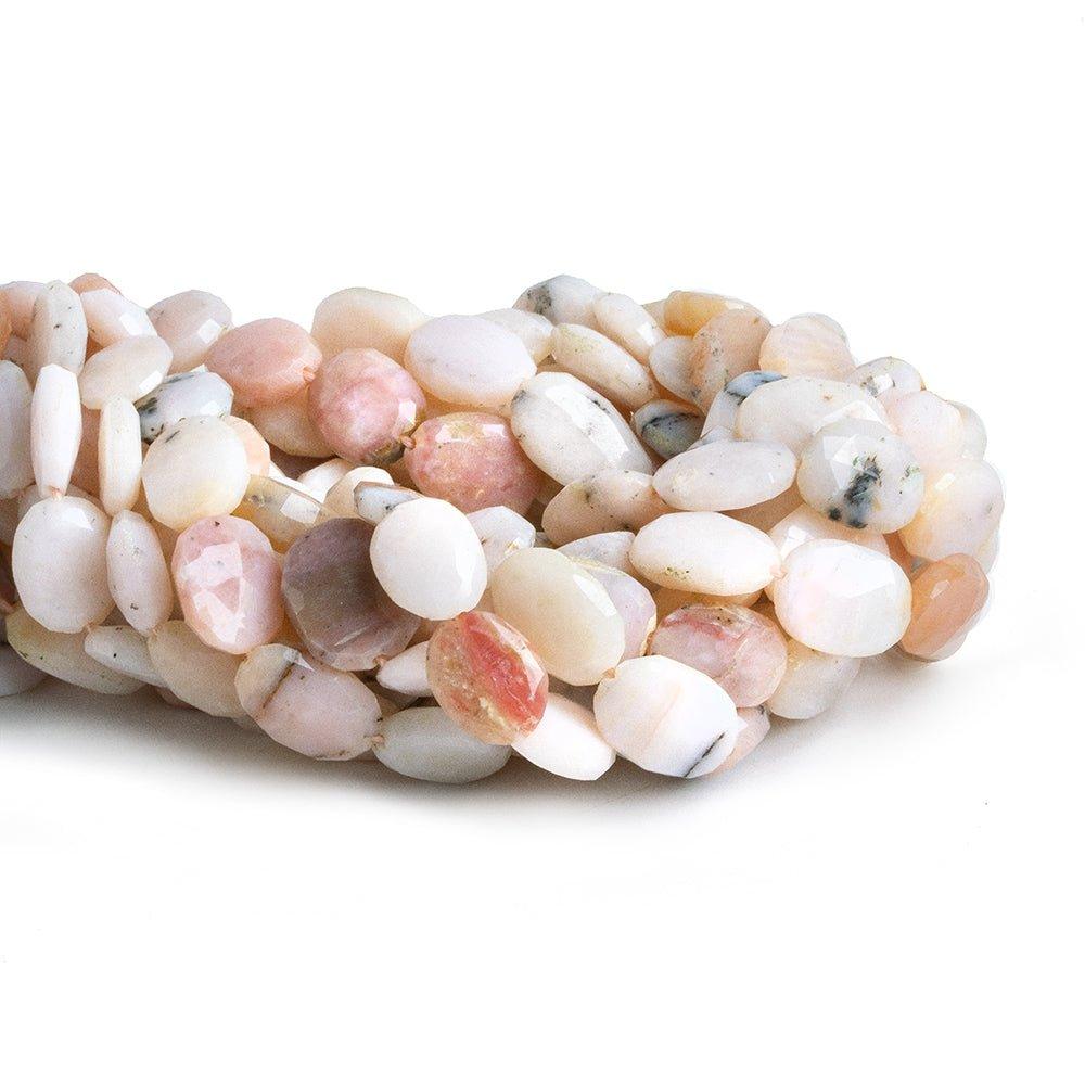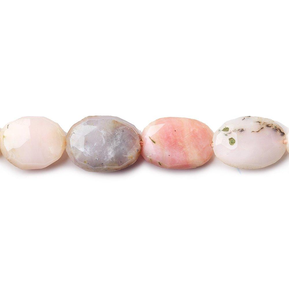 Beads average about 13x9mm. These beautiful and sizable faceted ovals show off a full range of light Pink Peruvian Opal colors, from creamy and off-white to rich pink tones. In addition, our specially curated ovals feature some of the unique textures and patterns familiar to fans of this gemstone favorite. Plan your next big jewelry design around the wonders of Pink Peruvian Oval, perfect for necklaces, earrings and more.