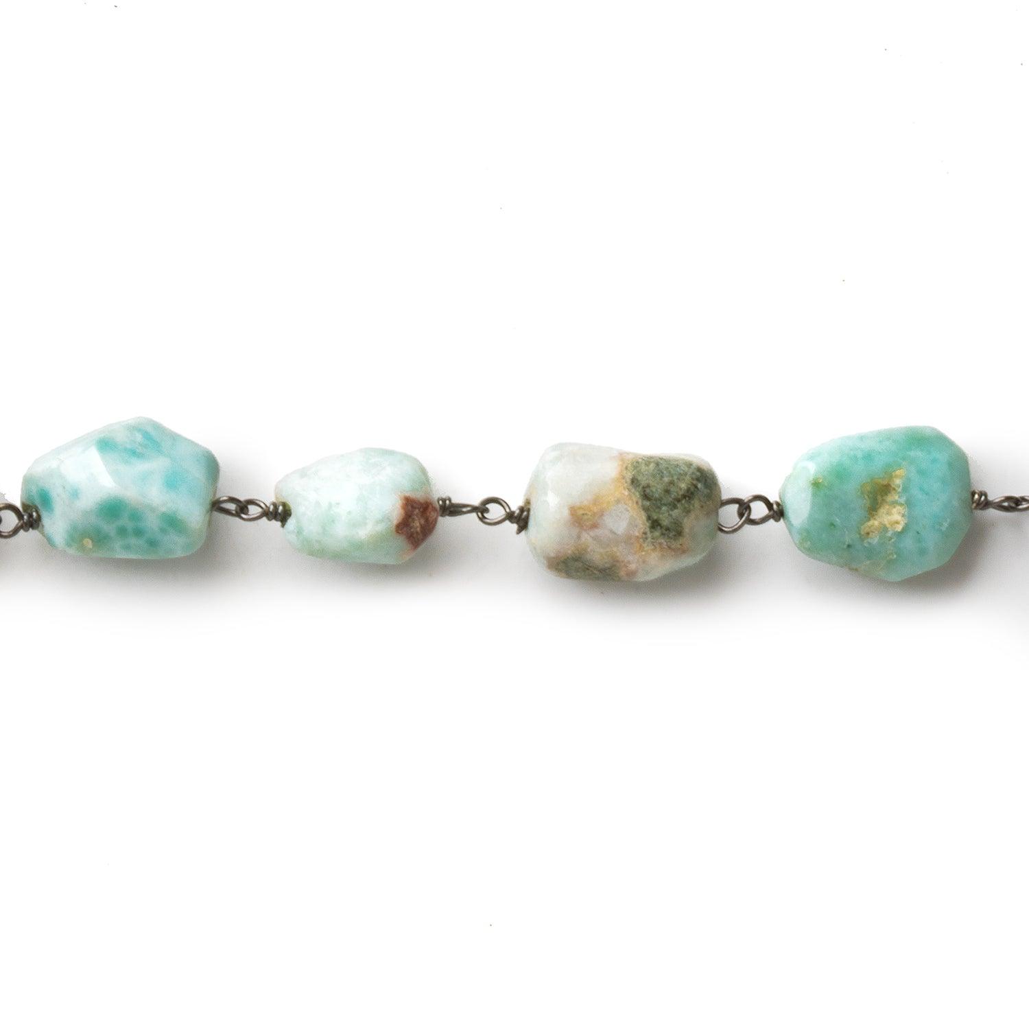 11x10mm Larimar Faceted Nugget Black Gold Chain 22 beads