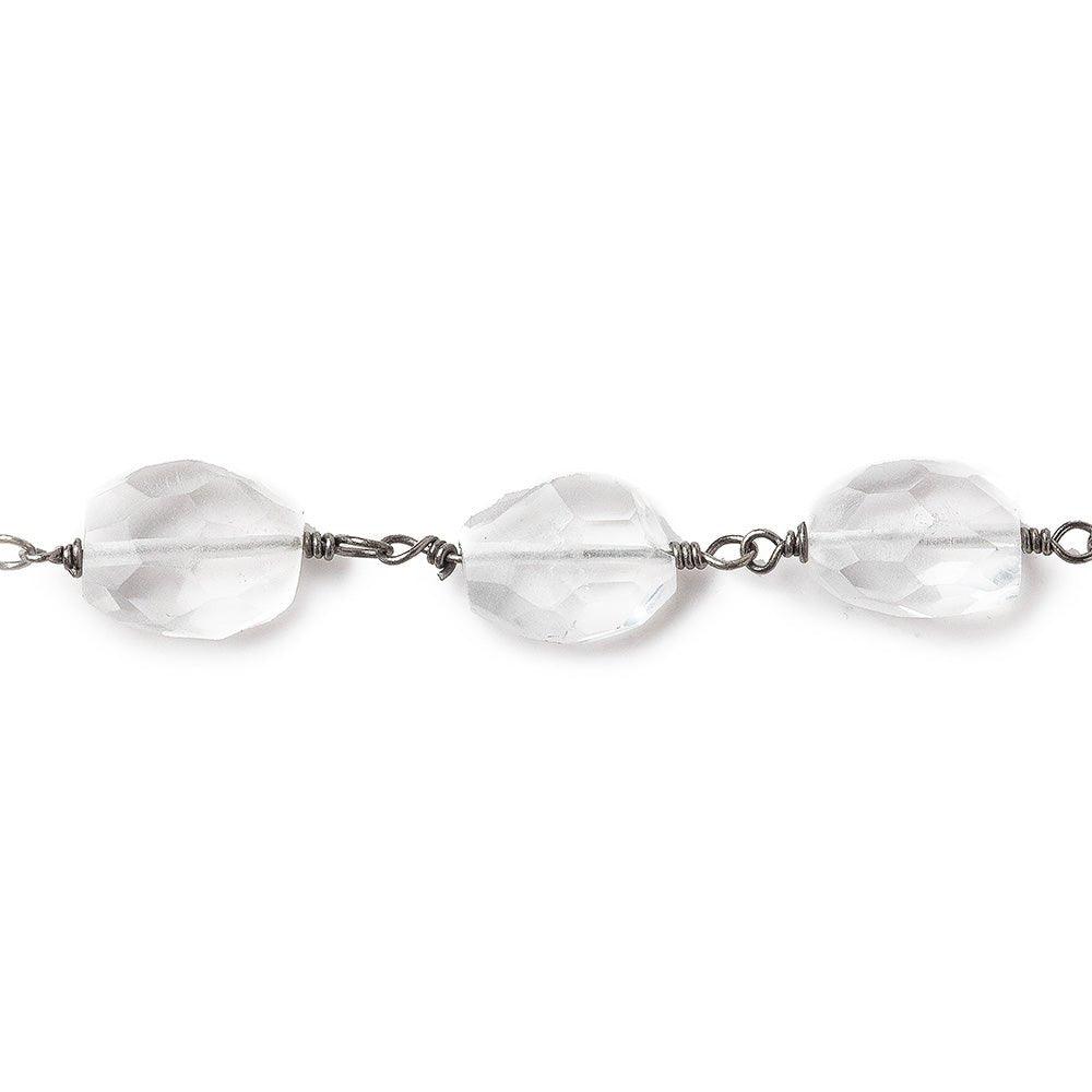 11x7mm Crystal Quartz faceted oval Black Gold plated Chain by the foot 17 beads