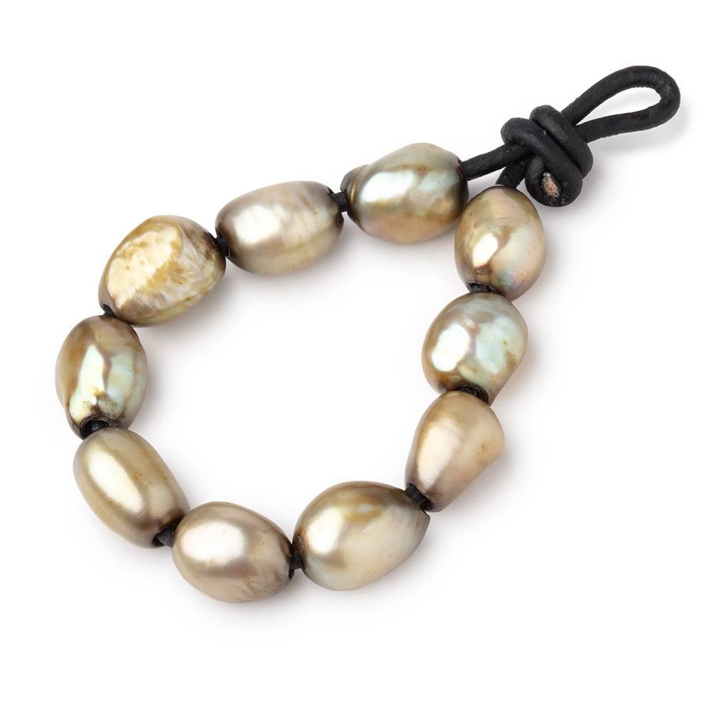 11-13mm Palm Green Large Hole Baroque Freshwater Pearls 10 Beads