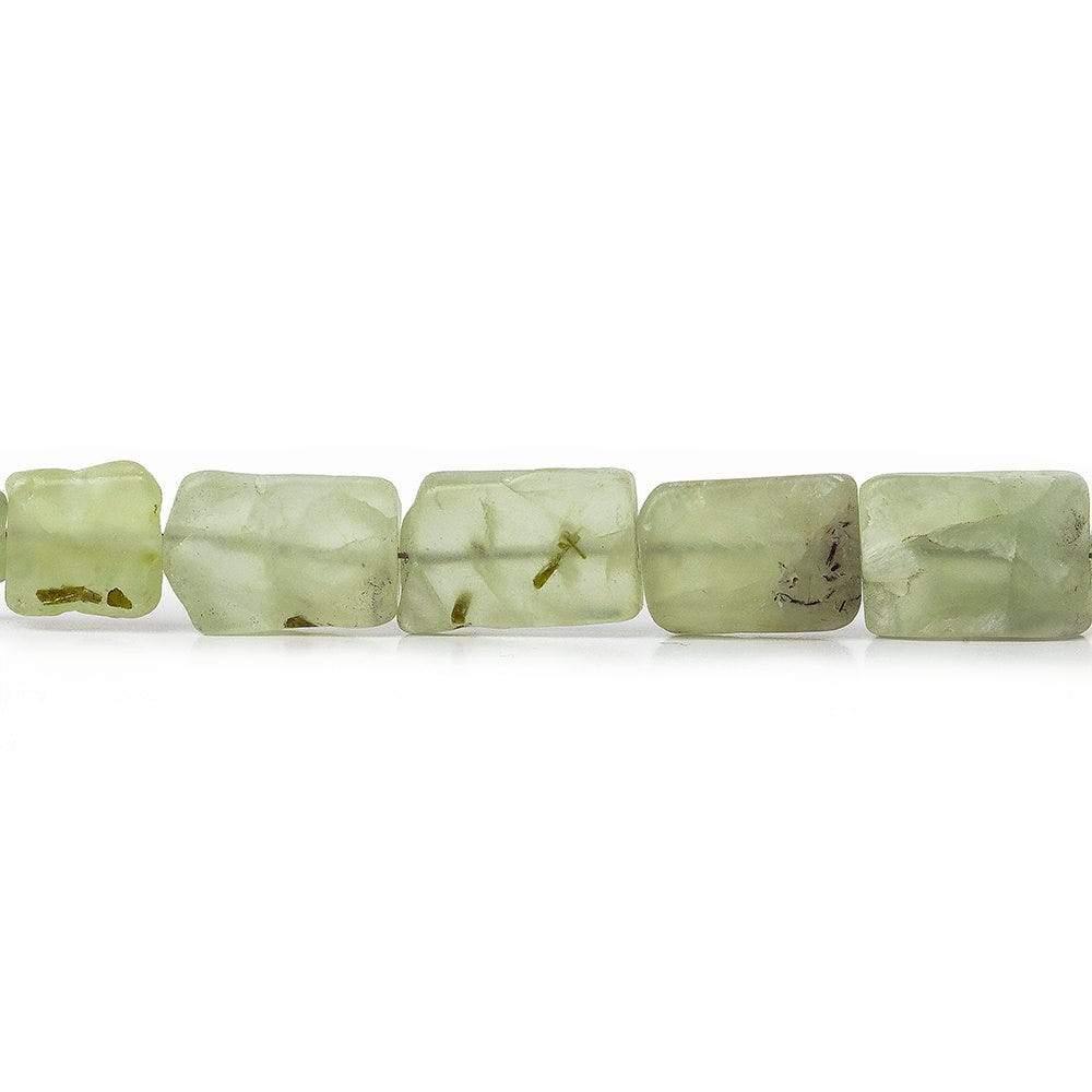 Prehnite Beads Tumbled Hammer Faceted Rectangulars measure approximately 11x9x6mm to 15x10x6mm in size, have a glass like luster, beads are chip faceted for a natural look then are double tumbled to smooth out the facets, the stones are semi-translucent in transparency, the body colors are a natural deeply saturated green hue with a strongly yellowish tone with a frosted appearance, gemstones have natural internal characteristics, the edges have a melted-ice appearance and irregular rectangle shape, and these Hammer Faceted beads have a silky smooth texture from our line of Tumbled Hammer Faceted gems.Hammer Faceted beads are faceted using the Ancient Technique of hand chipping the gemstone to create its shape, the gemstones have a natural appearance with crisp edges which are tumbled to smooth out any roughness on the edges, the stones are Translucent to Opaque in quality, the body colors can be natural or color treated to any hue in the rainbow, the gemstones present with the natural internal characteristics of the gemstones, the Hammer Faceted Tumbled gemstone group will have an edge with a melted appearance due to the secondary shaping after chip faceting, and this Hammer Faceted group show excellent weight, great presence for shape, have a great feel, and add unlimited color options.