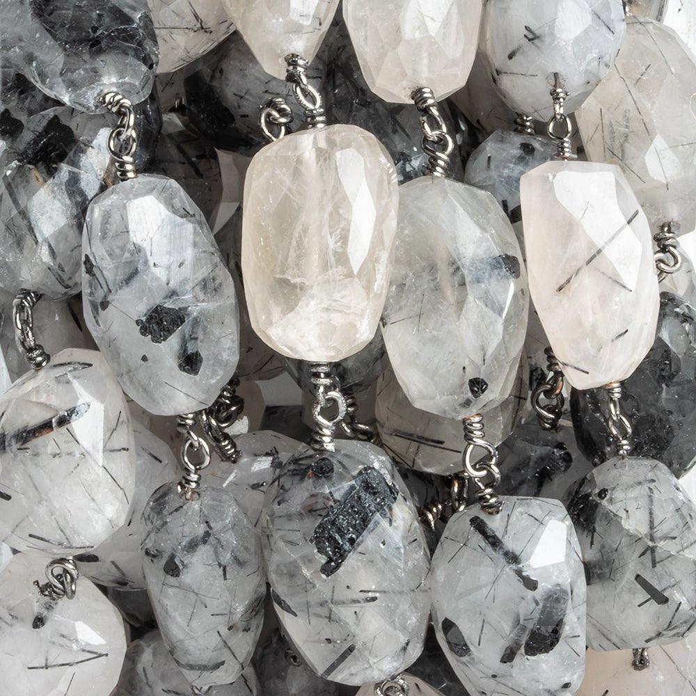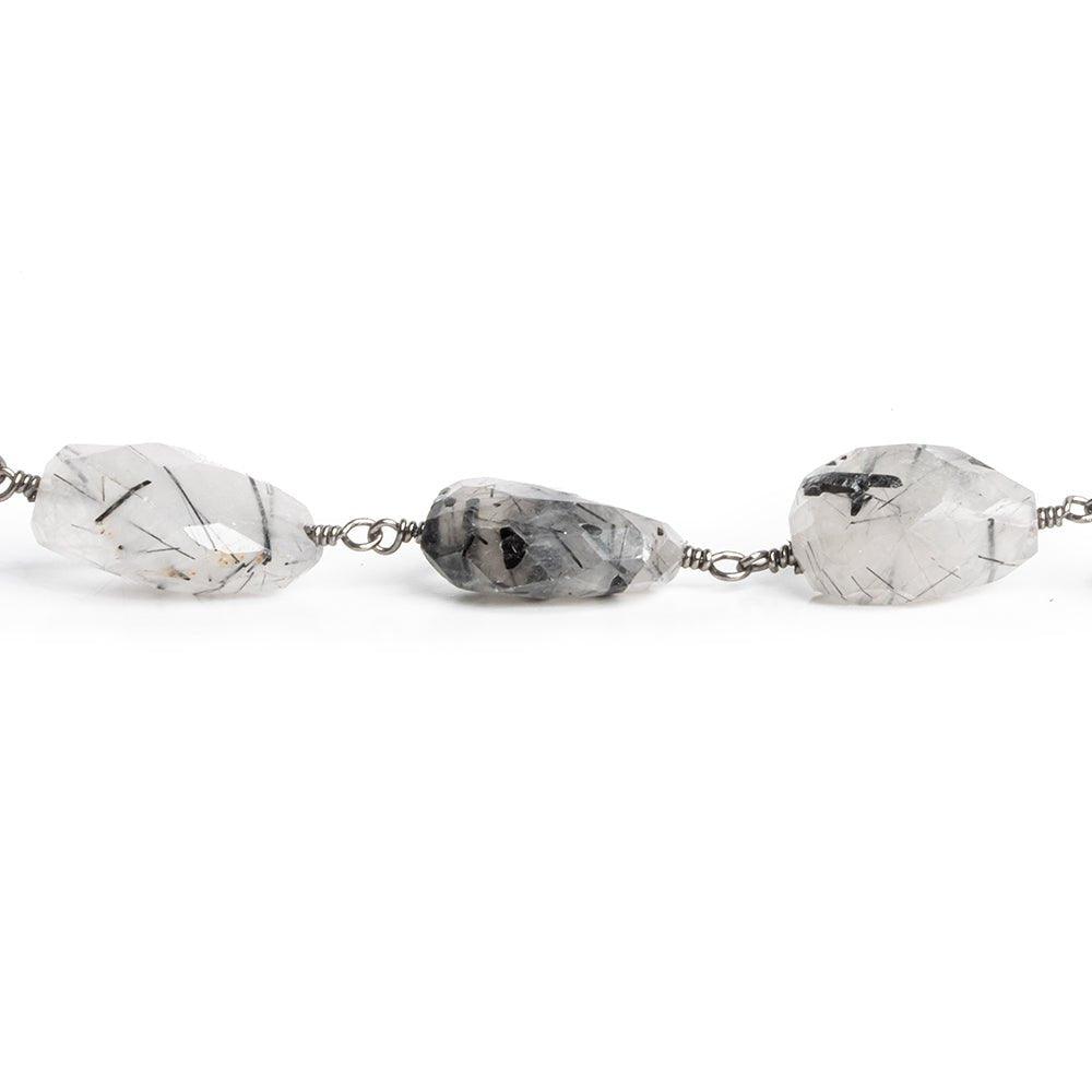12x8-17x10mm Black Tourmalinated Quartz faceted nugget Black Gold plated Chain by the Foot 14 pieces