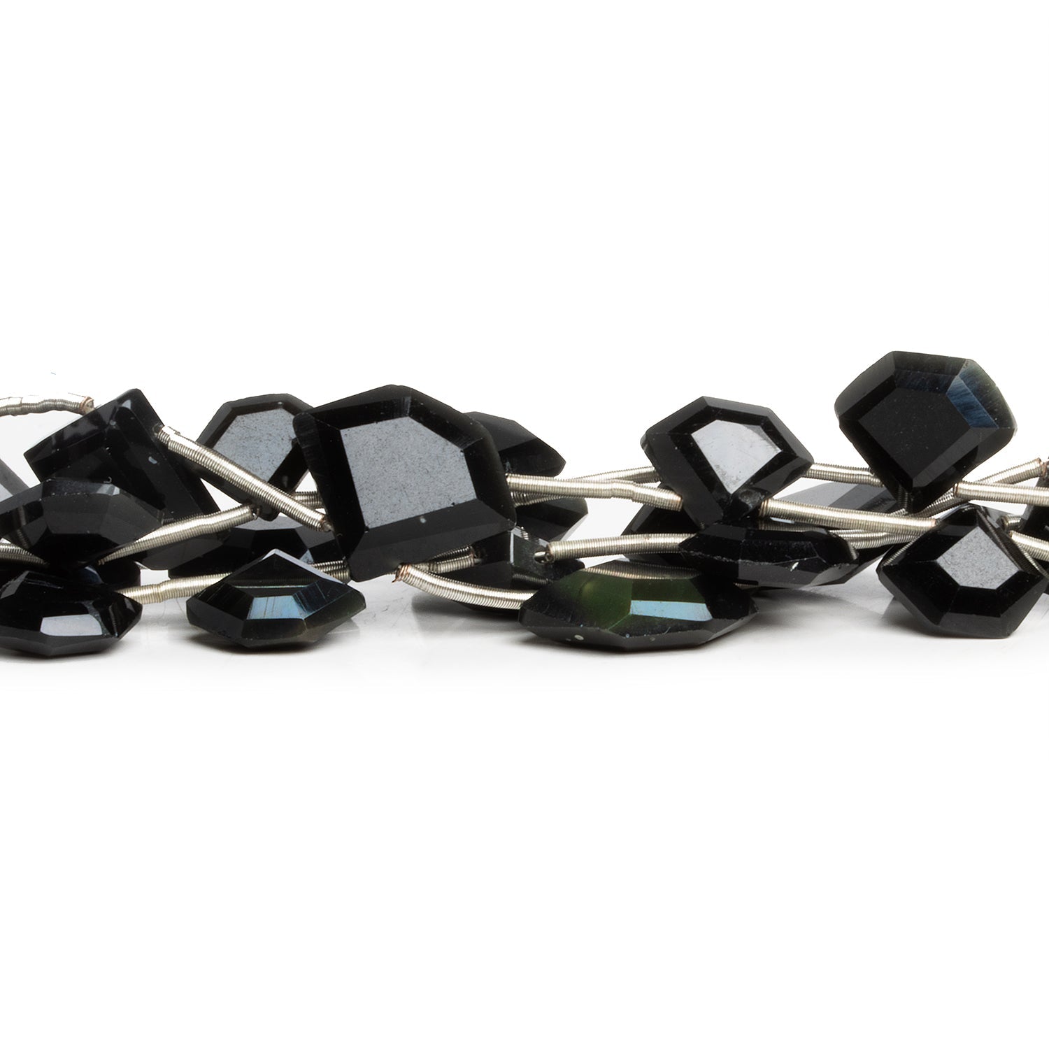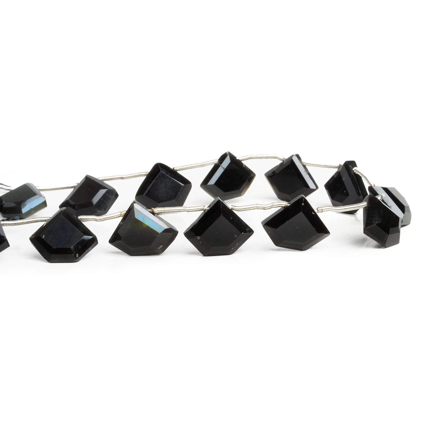 Beads average about 12x9mm. These jet black bodies feature the subtle hints of rainbow color that give this gemstone its name. Fans of Obsidian seeking an extra pop should check out these masterfully crafted, pavilion cut beads. These excellent beads are perfect for a wide range of Jewelry Designs, from necklaces to earrings and more.