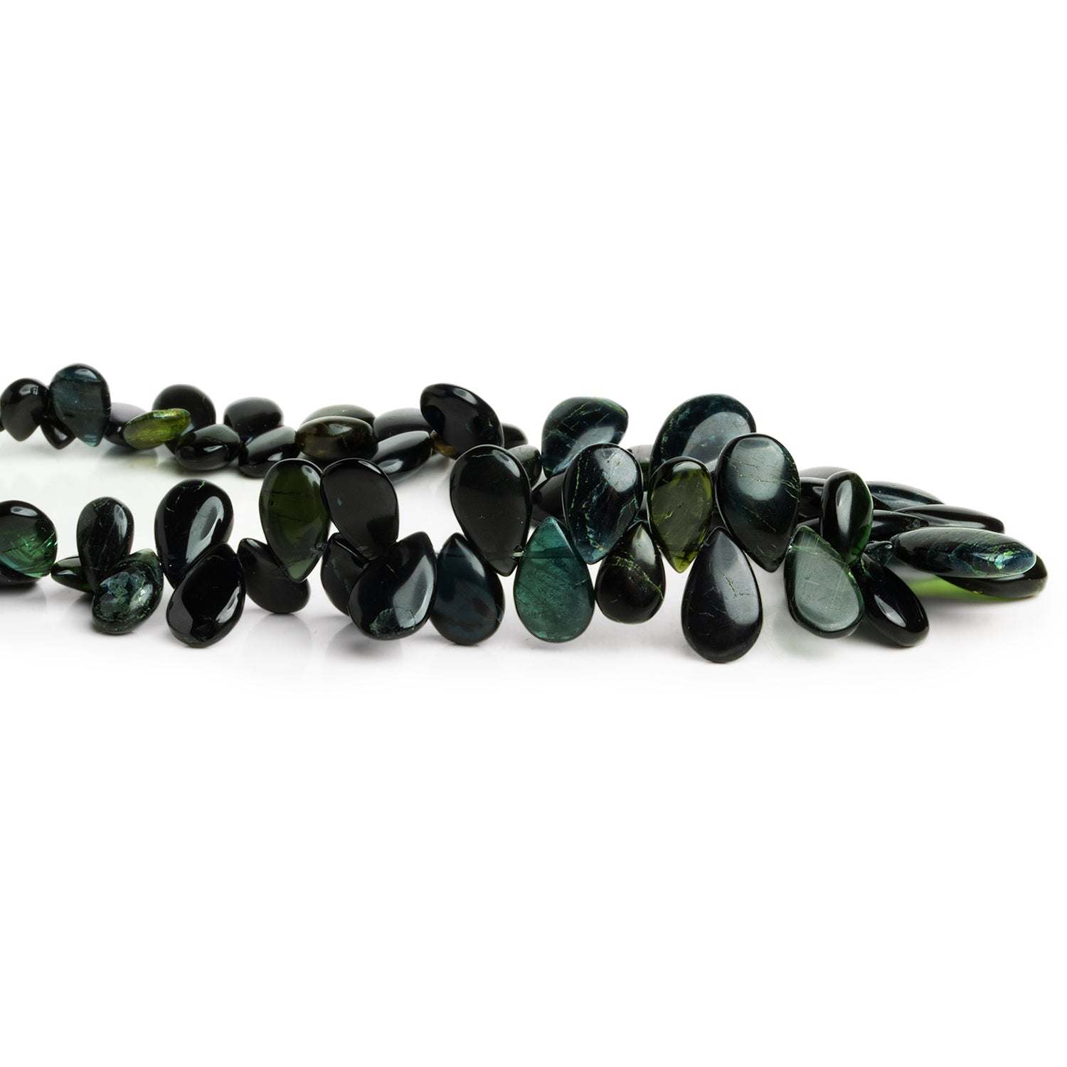 Beads measure about 8x5mm to 18x9mm. Explore the modern mystique of our alluring Green Tourmaline Pears, whose dark bodies conceal an impossibly rich tone that becomes clear as light passes through it. Expect hidden hues that range from a yellowish green to a deep blue that are all destined to dazzle in any of your most ambitious jewelry designs. Imbue your next slate of creations with the storied beauty of Tourmaline, perfect for necklaces, earrings and much more.