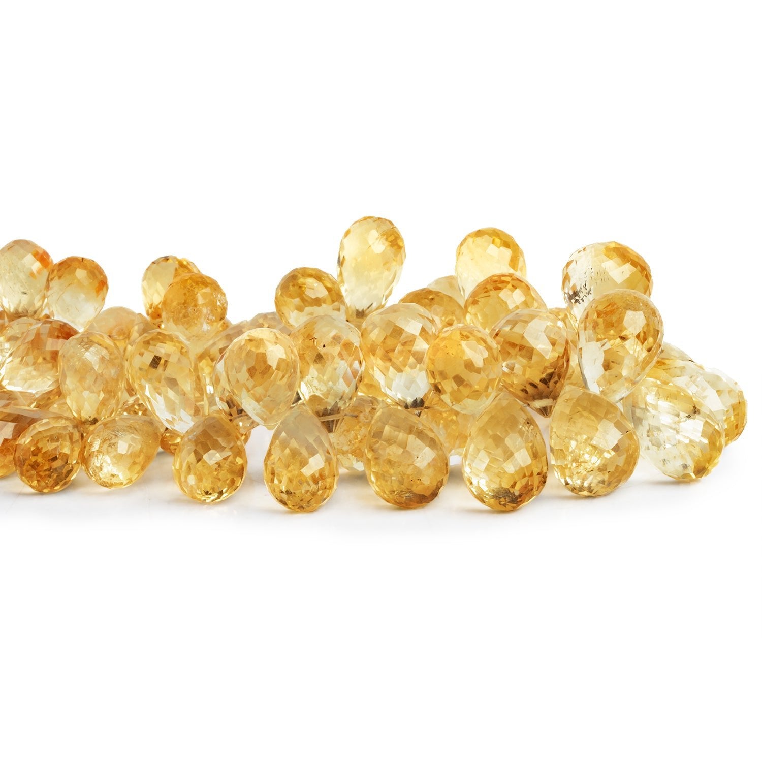 Beads range from about 9x6mm to 16x10mm. Feast your eyes on colorful Citrine masterfully crafted into glittering faceted teardrops. These pieces exude quality and elegance on sizable beads perfect for luxurious design endeavors. Imbue your designs with the remarkable subtleties of Citrine with this specially curated strand, ideal for use in necklaces, earrings and much more.