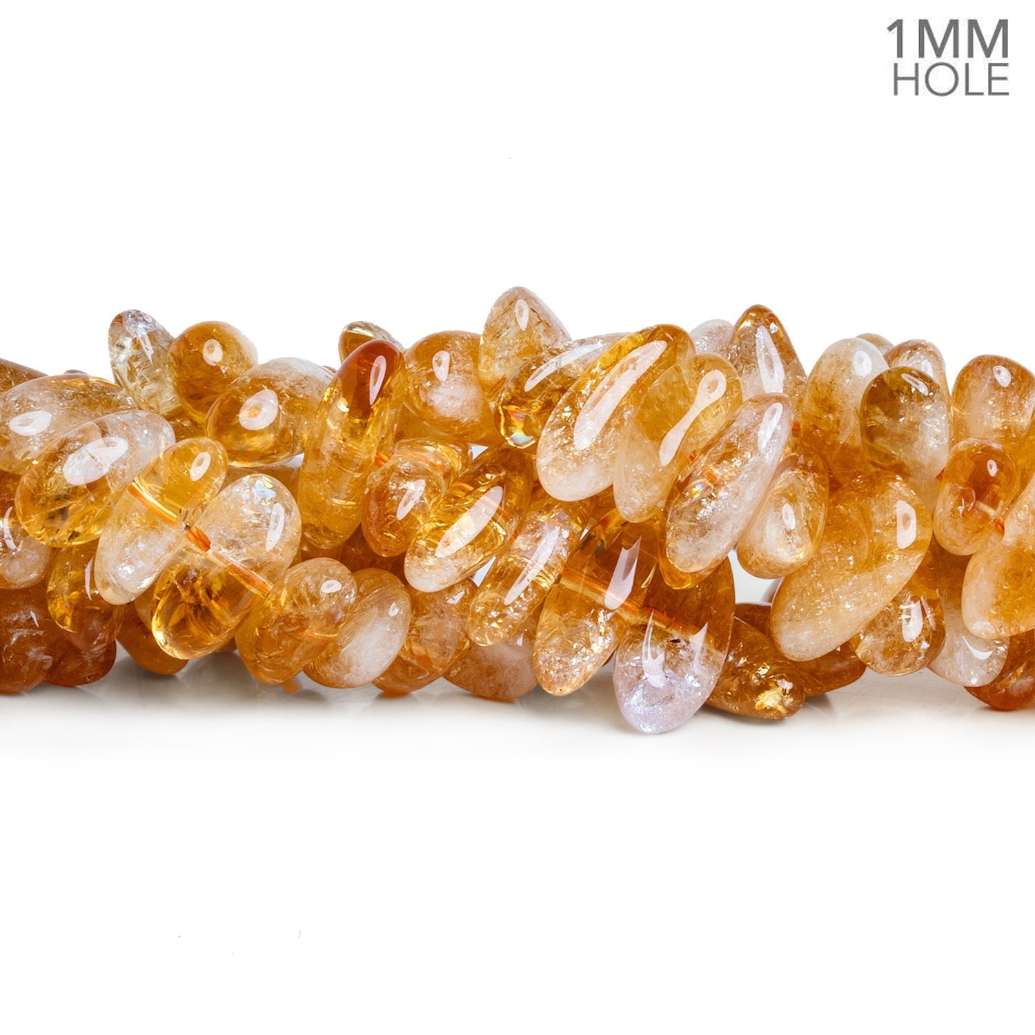 Our stunning Bi-Color Citrine Plain Nuggets show off an elongated shape with a side-drilled orientation and range from about 9x8mm to 17x10mm. Expect icey white to mingle with translucent orange citrine on each bead to astonishing effect. These specially curated pieces are destined to dazzle in necklaces, earrings, bracelets and much more with a versatile smooth polish and rich tone. Pair Citrine with your favorite metals and complementary gemstones for regal design concepts perfect for any occasion.