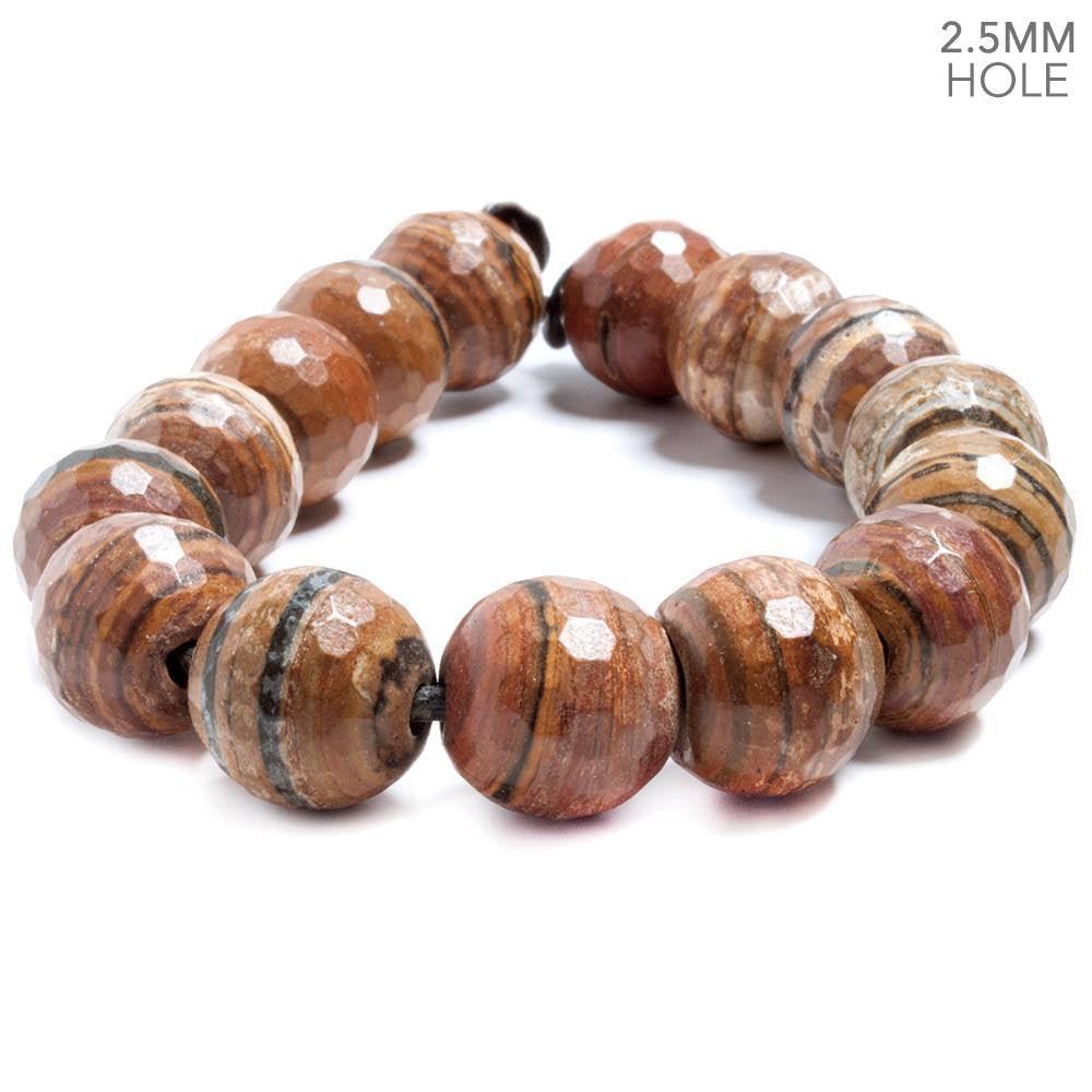 Approximates: 14mm diameter beads on a strand measuring 8 inches with 15 beads with 2.5mm inside diameter drill hole Jasper. Beads come strung on thick leather cord.
