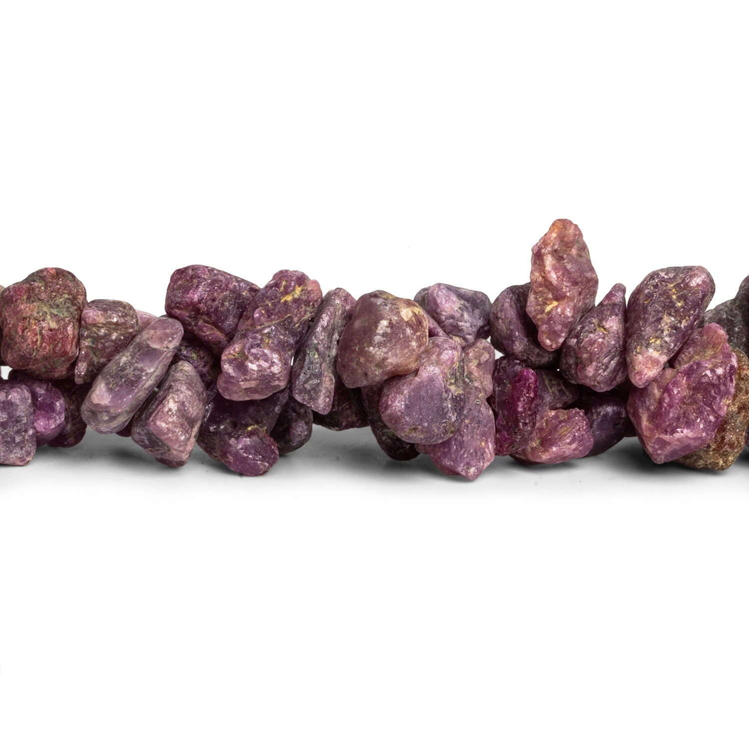 Our Ruby Natural Crystal Beads radiate raw intensity, with their deep purplish-red hues enriched by earthy undertones and natural mineral matrix. Each bead, ranging from 6x5mm to 19x16mm, is left in its organic, unpolished form, allowing the striking variations in color, texture, and structure to shine through. Their rugged surfaces and crystalline patterns evoke the timeless power of this gemstone, celebrated for centuries as a symbol of vitality and passion.
