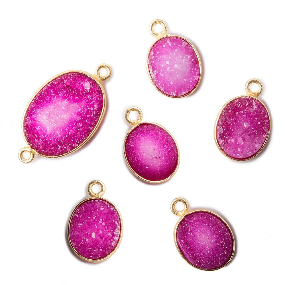 14x11-21x14mm Pink Oval Drusy Vermeil Bezel Pendant & Connector Set of 6
