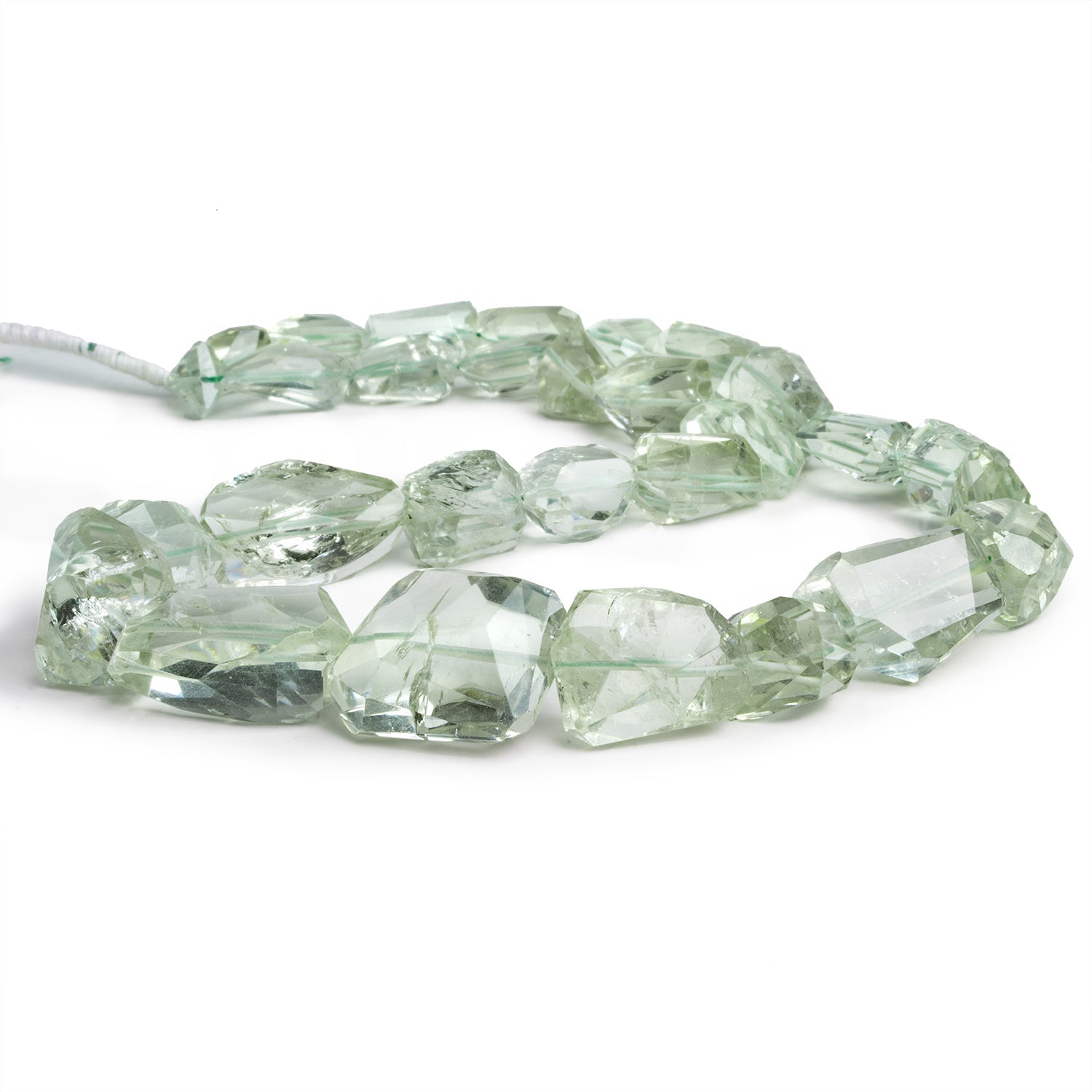 These Mint Green Prasiolite Faceted Nuggets offer a delicate yet captivating touch to your jewelry designs. Ranging from 9x8mm to 21x18mm, each nugget features the stone’s signature pale mint green color, with natural inclusions and textures adding character to each bead. The faceting enhances their brilliance, giving them a lovely sparkle in the light. The irregular, organic shape of these nuggets provides a unique and earthy feel, ideal for creating bold statement pieces or adding a touch of nature to more delicate designs. Sold by the strand, these prasiolite beads are perfect for crafting elegant necklaces, bracelets, or one-of-a-kind earrings that exude both sophistication and natural charm.