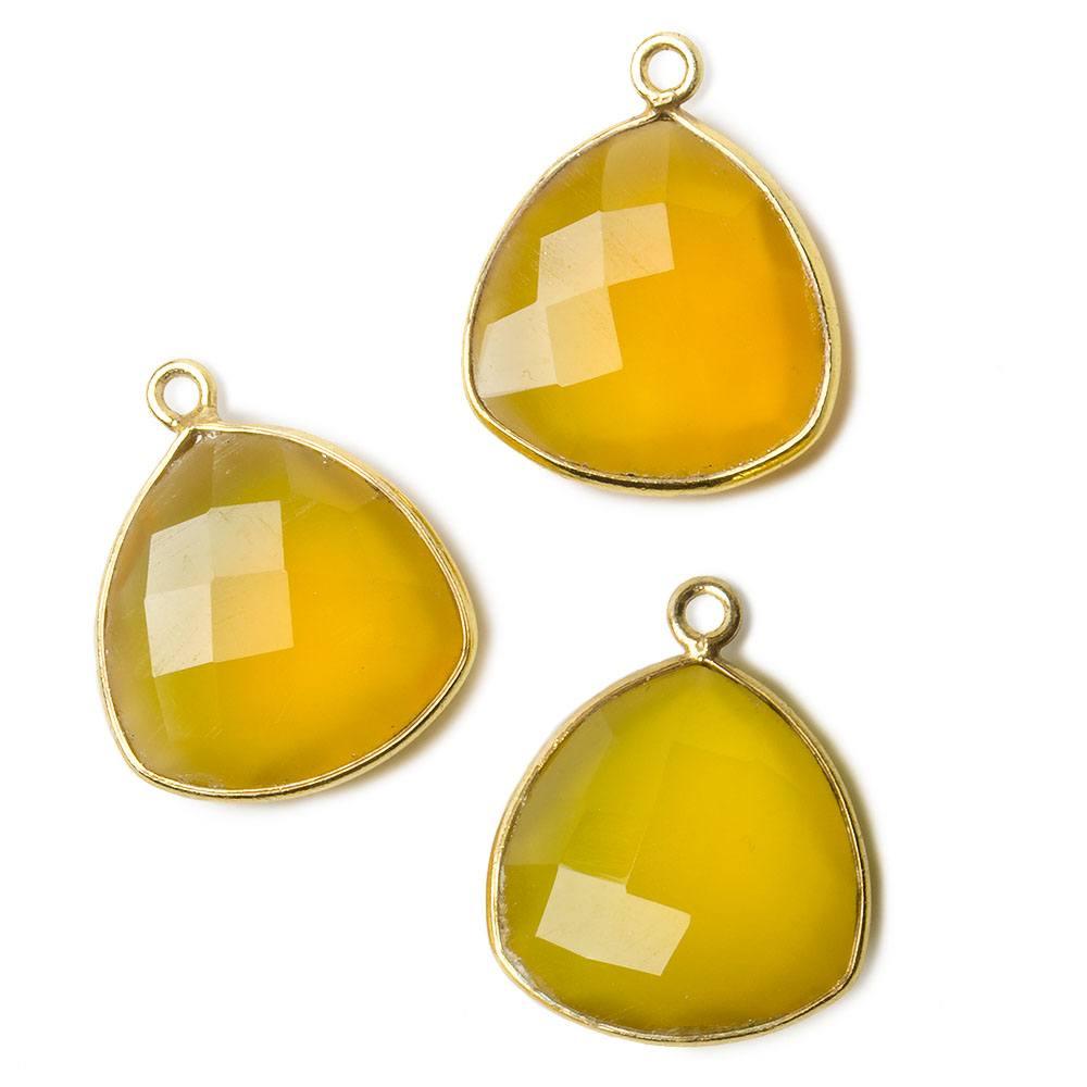 16mm Vermeil Butterscotch Yellow Chalcedony faceted triangle Pendant 1 piece
