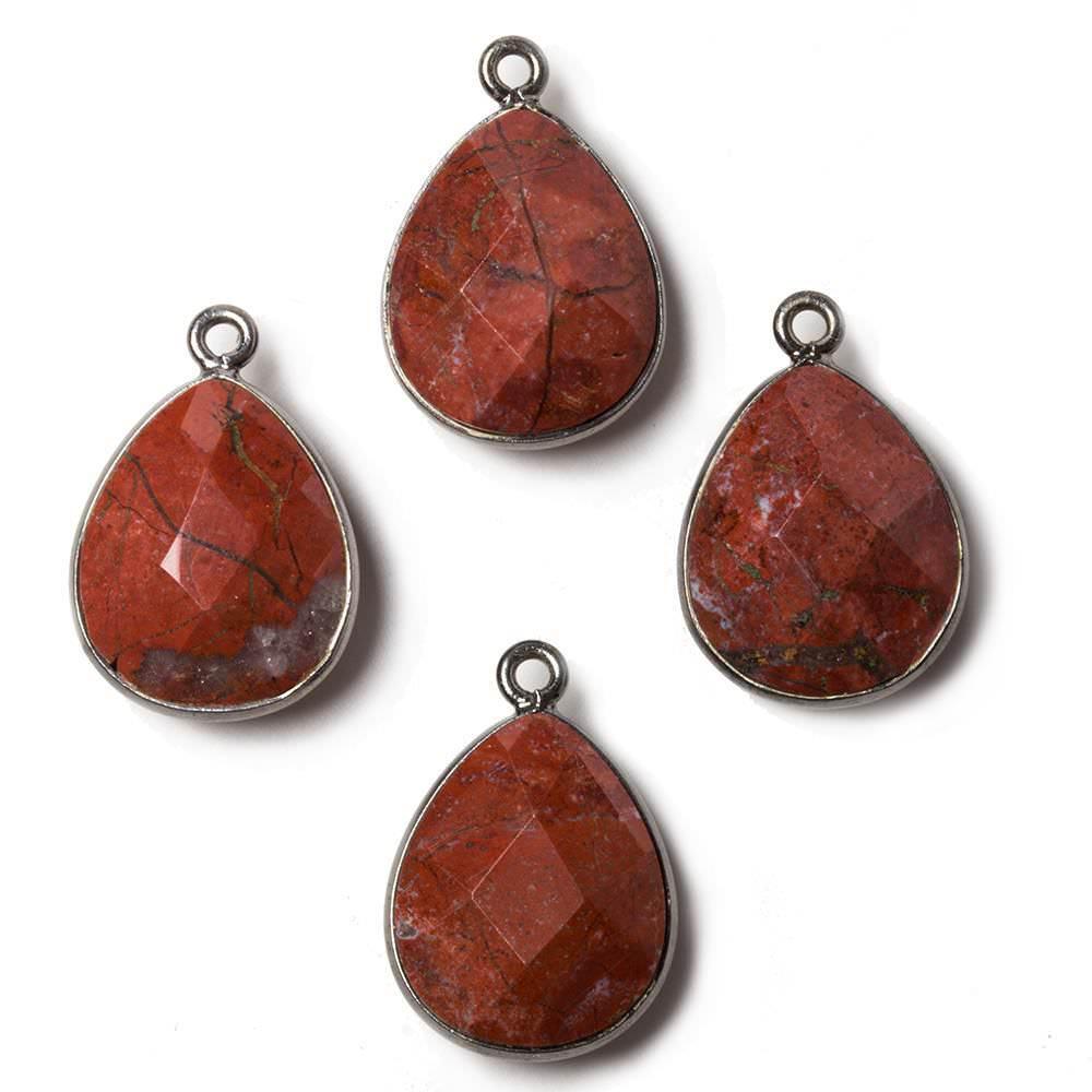 16x12.5mm Gunmetal Bezeled Red Jasper faceted pear Pendant sold as 1 piece.