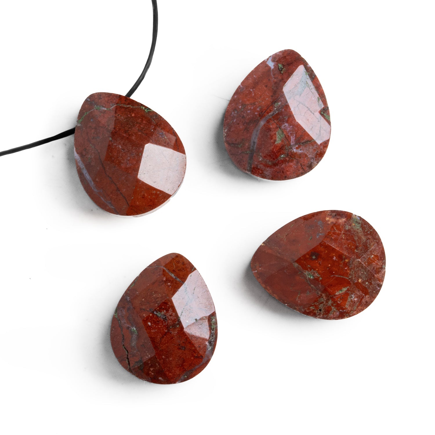 Beads average about 16x13mm. These matched set of 4 feature opaque red jasper filled with the alluring natural textures seen here. These focal beads are perfect for bringing together a wide range of designs from necklaces to earrings and more.
