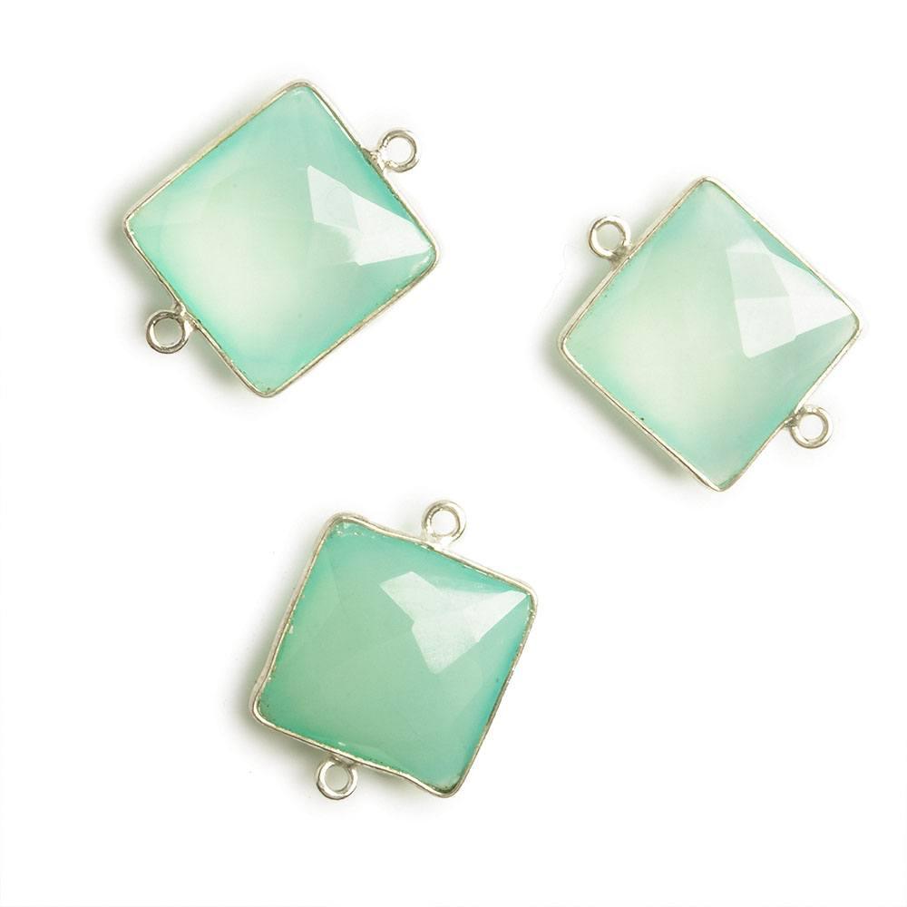16x16mm Silver Bezel Sea Blue Chalcedony Square Connector 1 piece