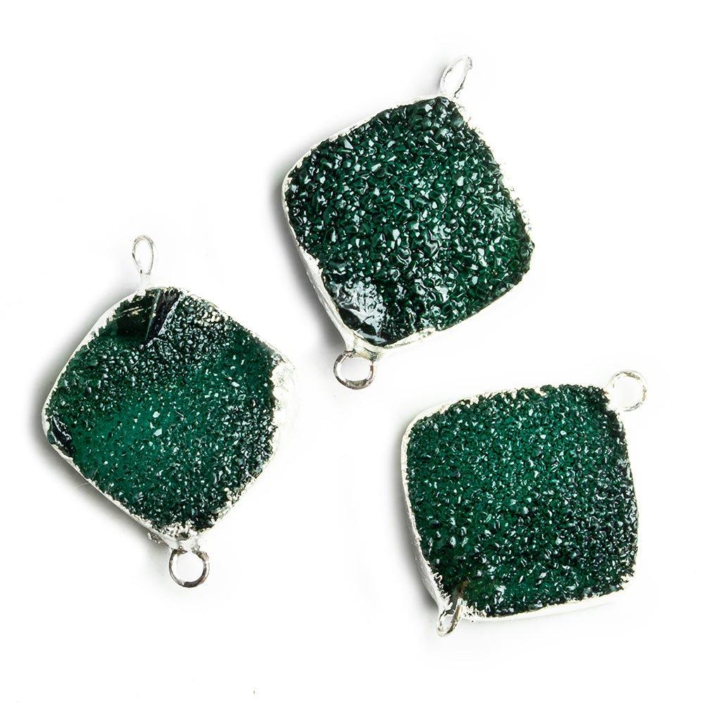 18mm Square Silver Leafed Green Drusy Corner Set Connector beads are hand crafted with precision measurements to showcase these color treated Drusy gemstones.