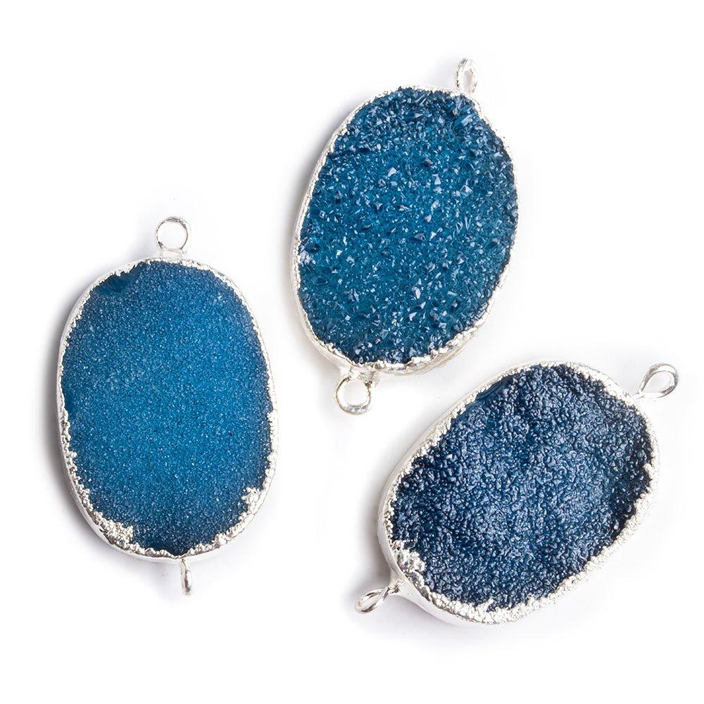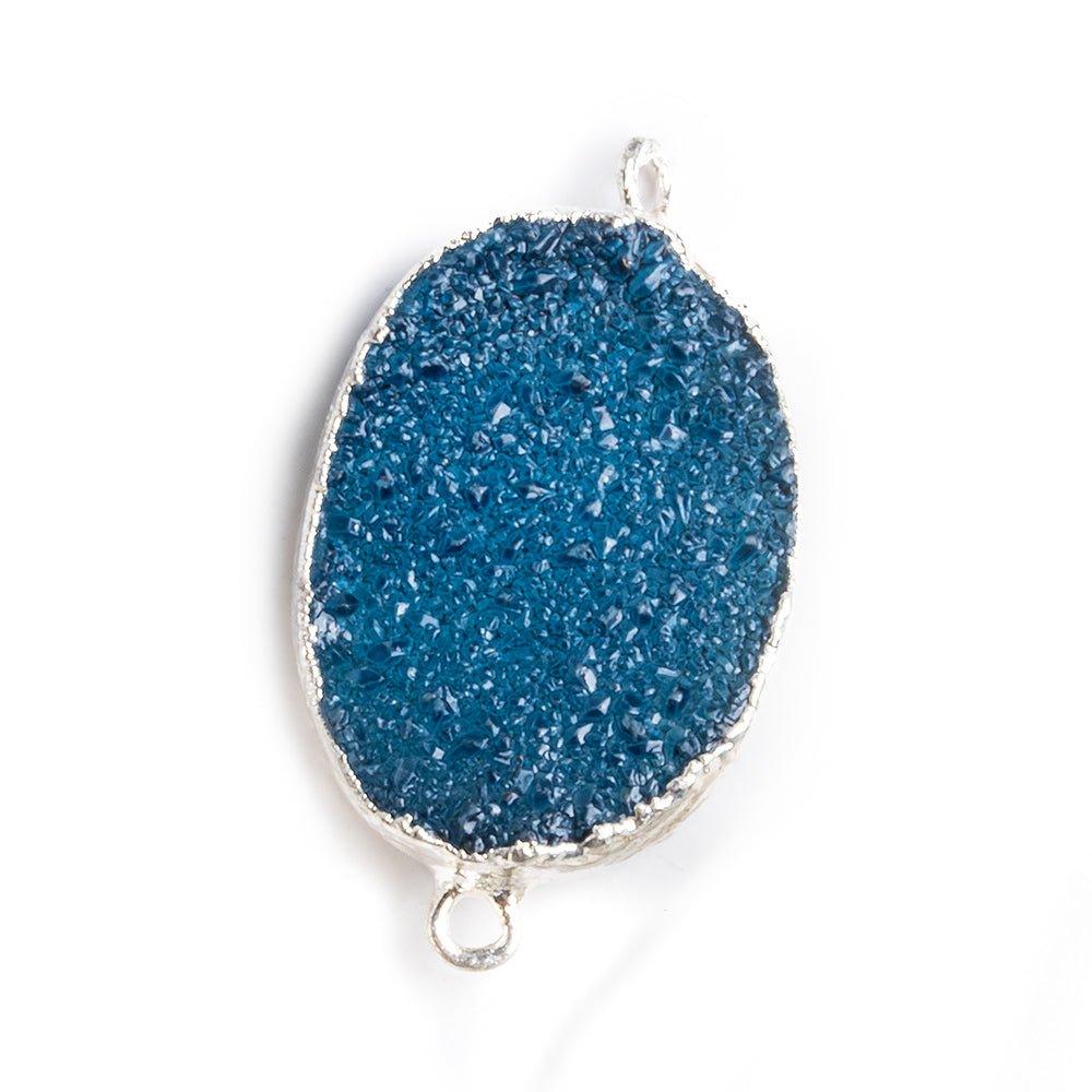18x25mm Oval Silver Leafed Blue Drusy connector beads are hand crafted with precision measurements to showcase these color treated Drusy gemstones.