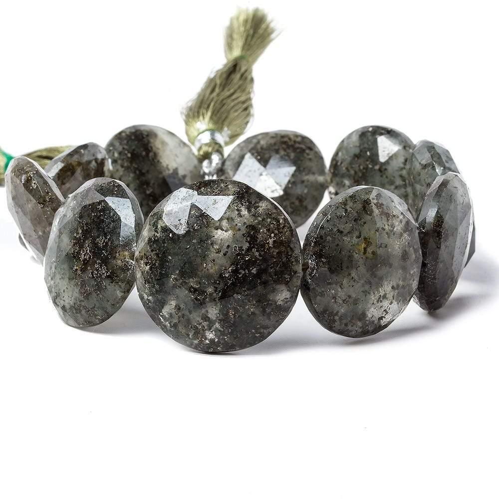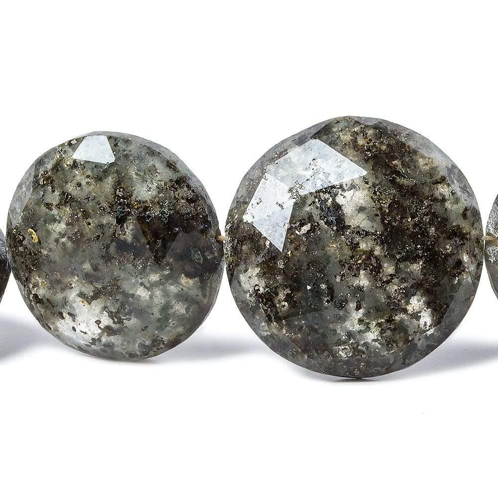 19-24mm Moss Quartz with Pyrite Straight Drill Coin 8 inch 10 beads