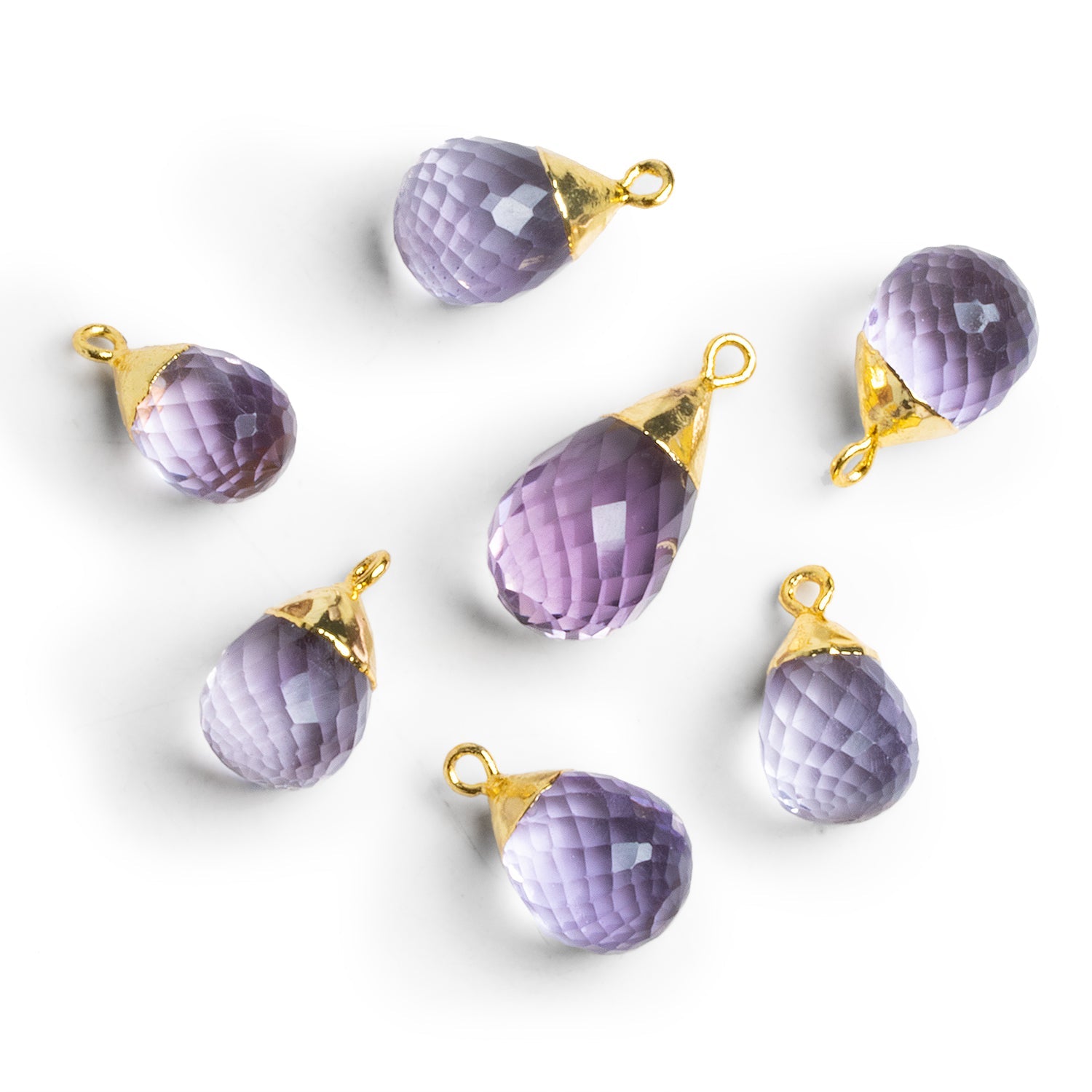 Beads average 19x12mm with a few mm of variation possible. These gorgeous pendant pieces exhibit an alluring, rich purple color palette, pairing exquisite, high-quality Amethyst with our signature gold leaf. These dainty pieces boast an exquisite faceting that highlights their remarkable clarity. Imbue your jewelry designs with the elegance and sophistication of regal purple and gold, perfect for earrings, necklaces and much more.