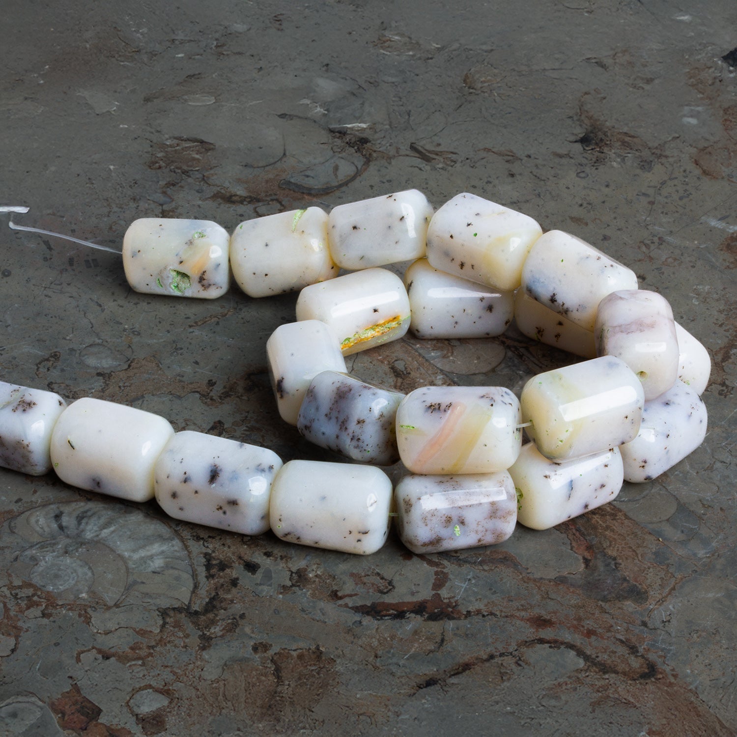 Soft, creamy, and wonderfully organic, these Pink Peruvian Opal rectangles feel like little pieces of sunrise captured in stone. Their gentle blush tones and natural speckling give designs a quiet, luminous charm that reads elevated but effortless. At 19x12mm, they’re the perfect mid-sized focal for layered necklaces, statement bracelets, or artful mixed-media pieces.