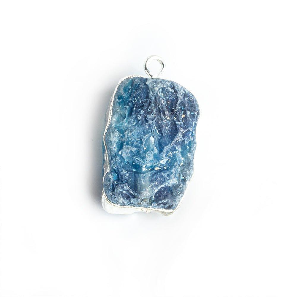 19x14.5mm-22x15mm Silver Leafed Blue Agate Hammer Faceted Focal Pendant 1 piece