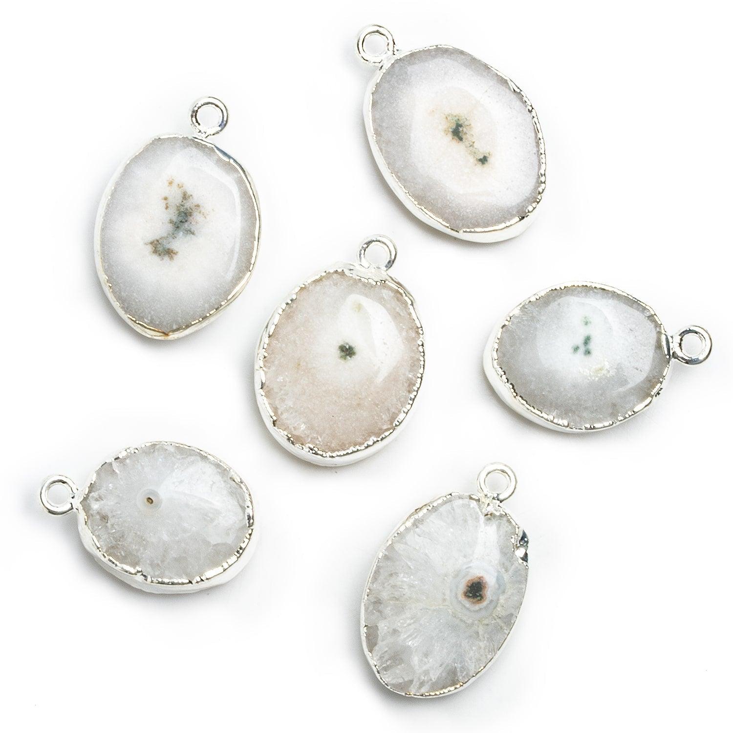 19x16mm Silver Leafed Solar Quartz Oval Pendant 1 piece