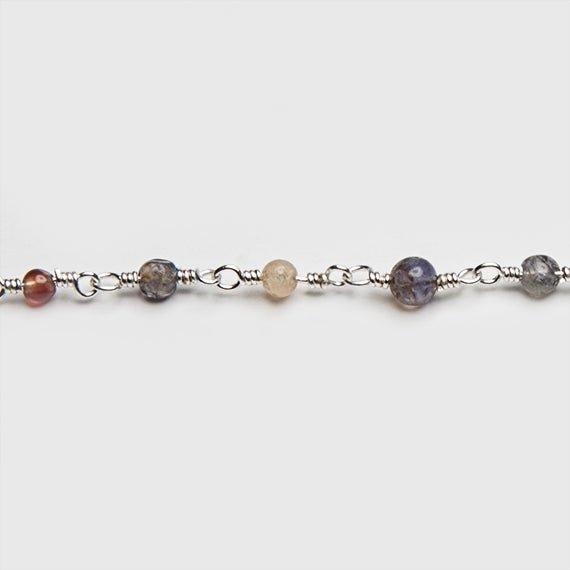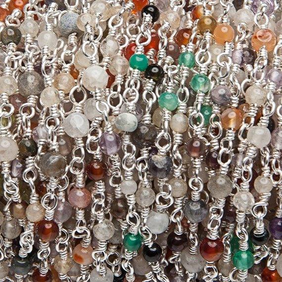 2.5-3mm MultiGem plain round Silver Rosary Chain by the foot