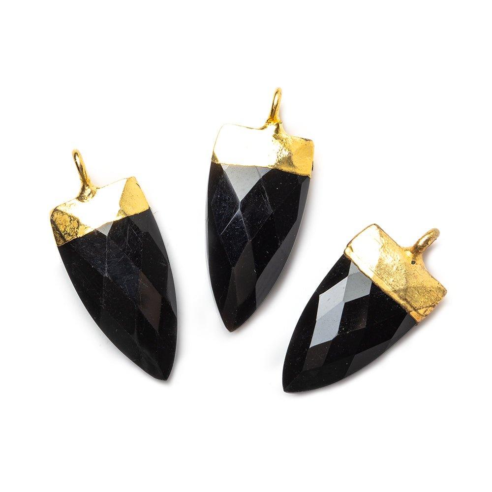 20x10mm Gold Leafed Black Chalcedony faceted point focal Pendant 1 piece, 24mm length with ring.