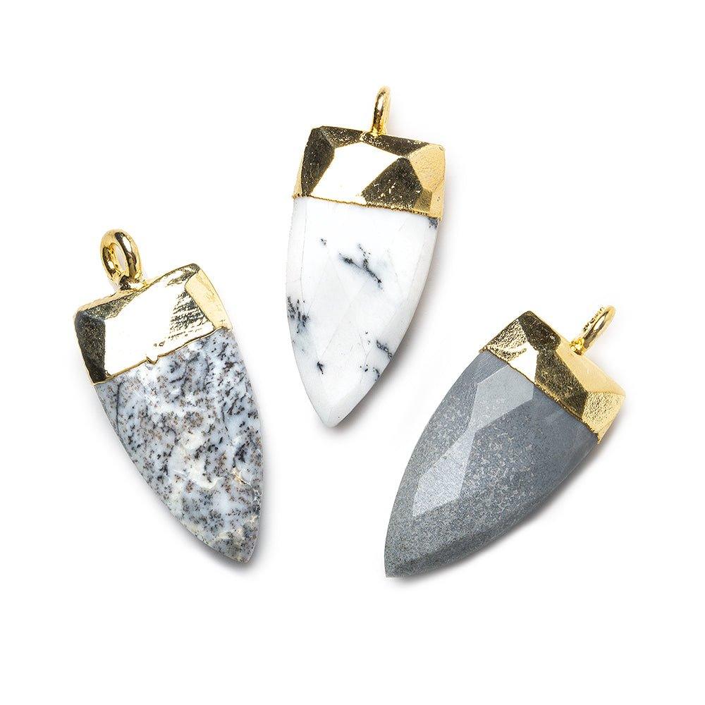 20x10mm Gold Leafed Dendritic Opal faceted point focal Pendant 1 piece